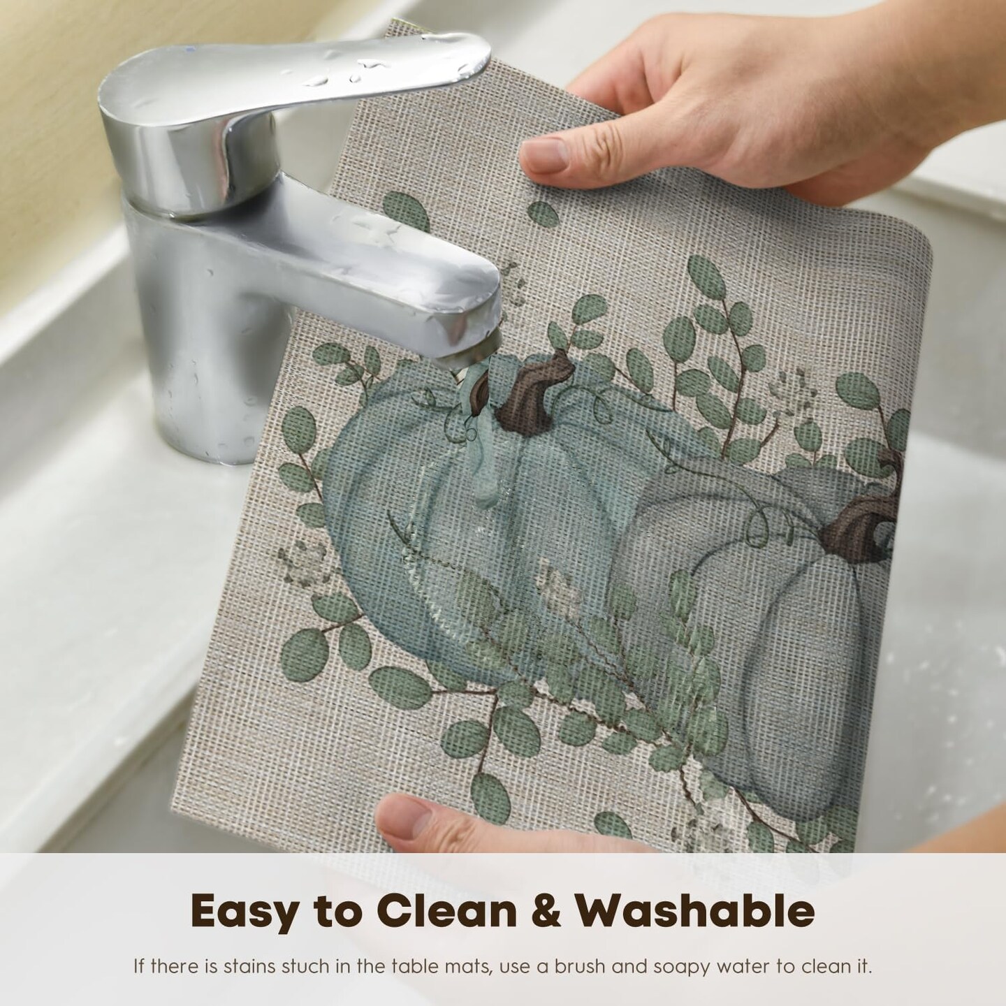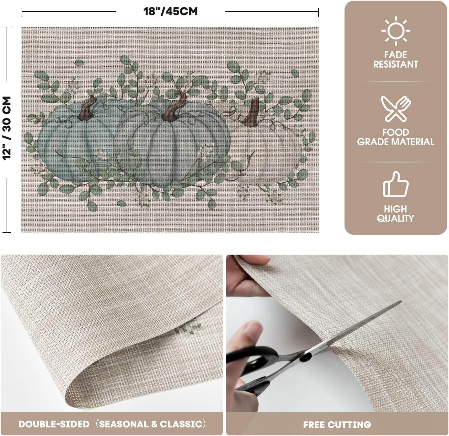 Set of 4 Pumpkin Leaves Fall Vinyl Placemats - 12" x 18" (Blue)
