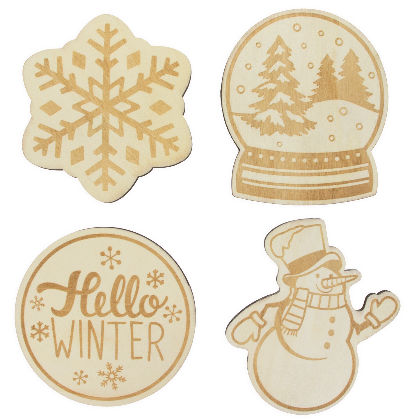 Set of 4 Unfinished Wooden Etched Winter Theme Cutout DIY Craft 4.8 Inches