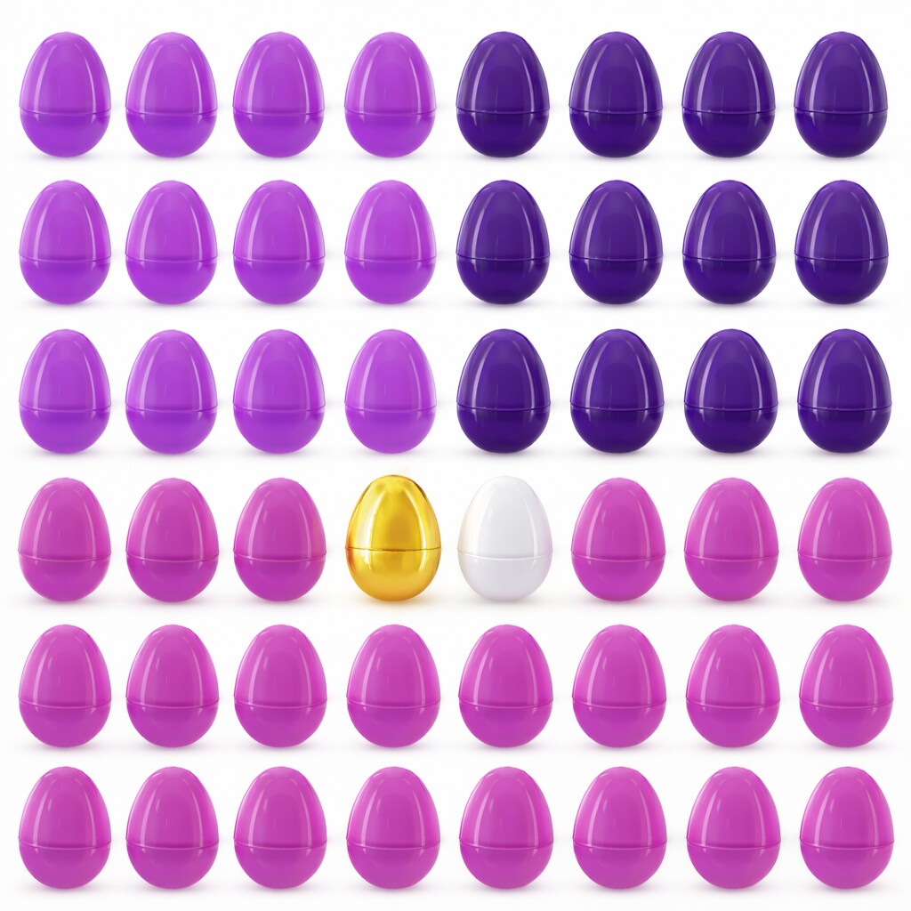 Set of 46 Purple Plastic Eggs, 1 White Egg + 1 Golden Easter Egg