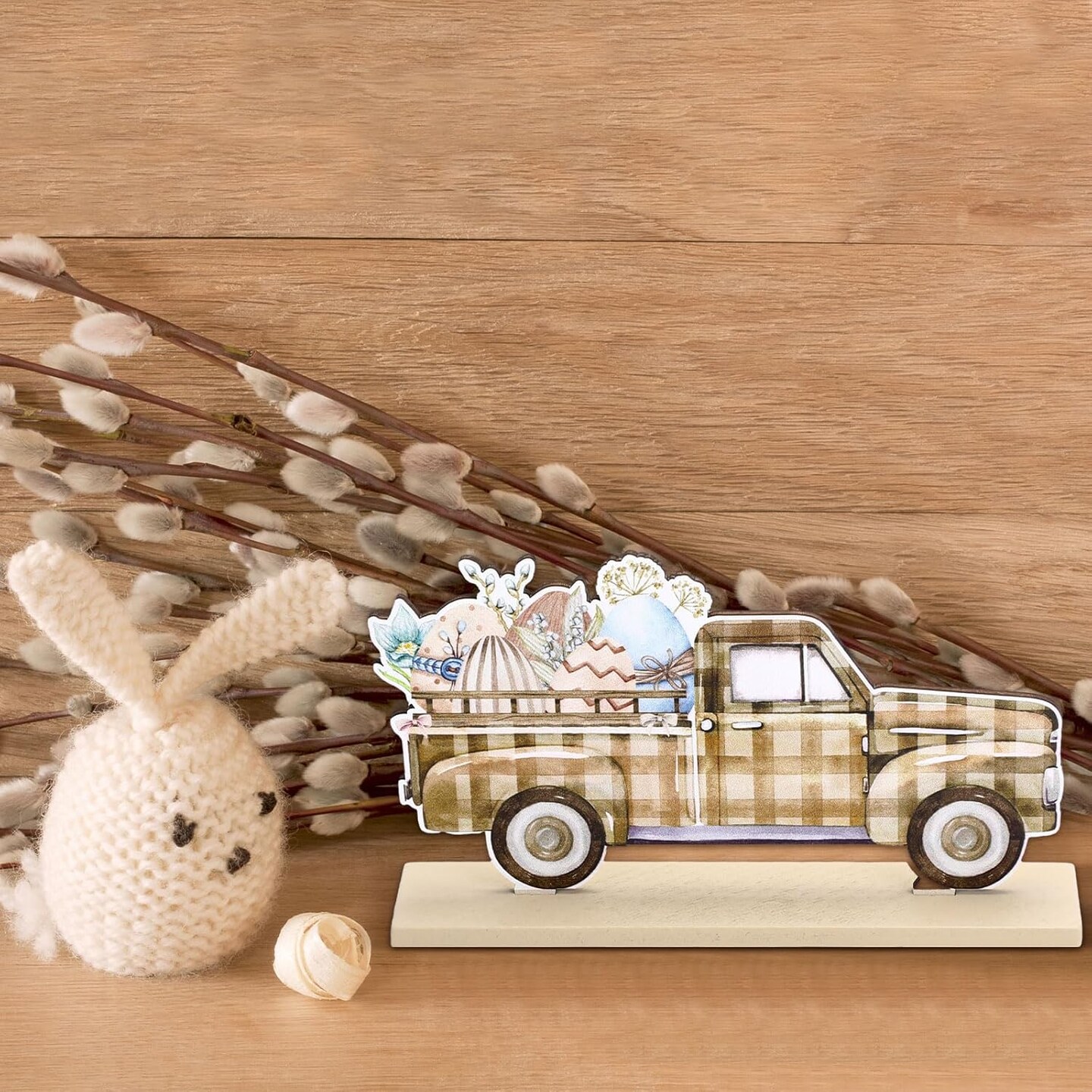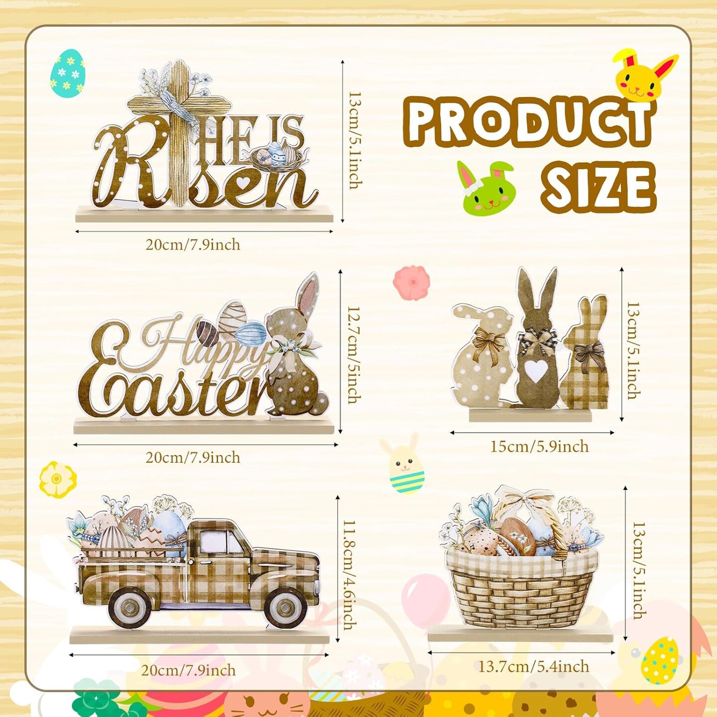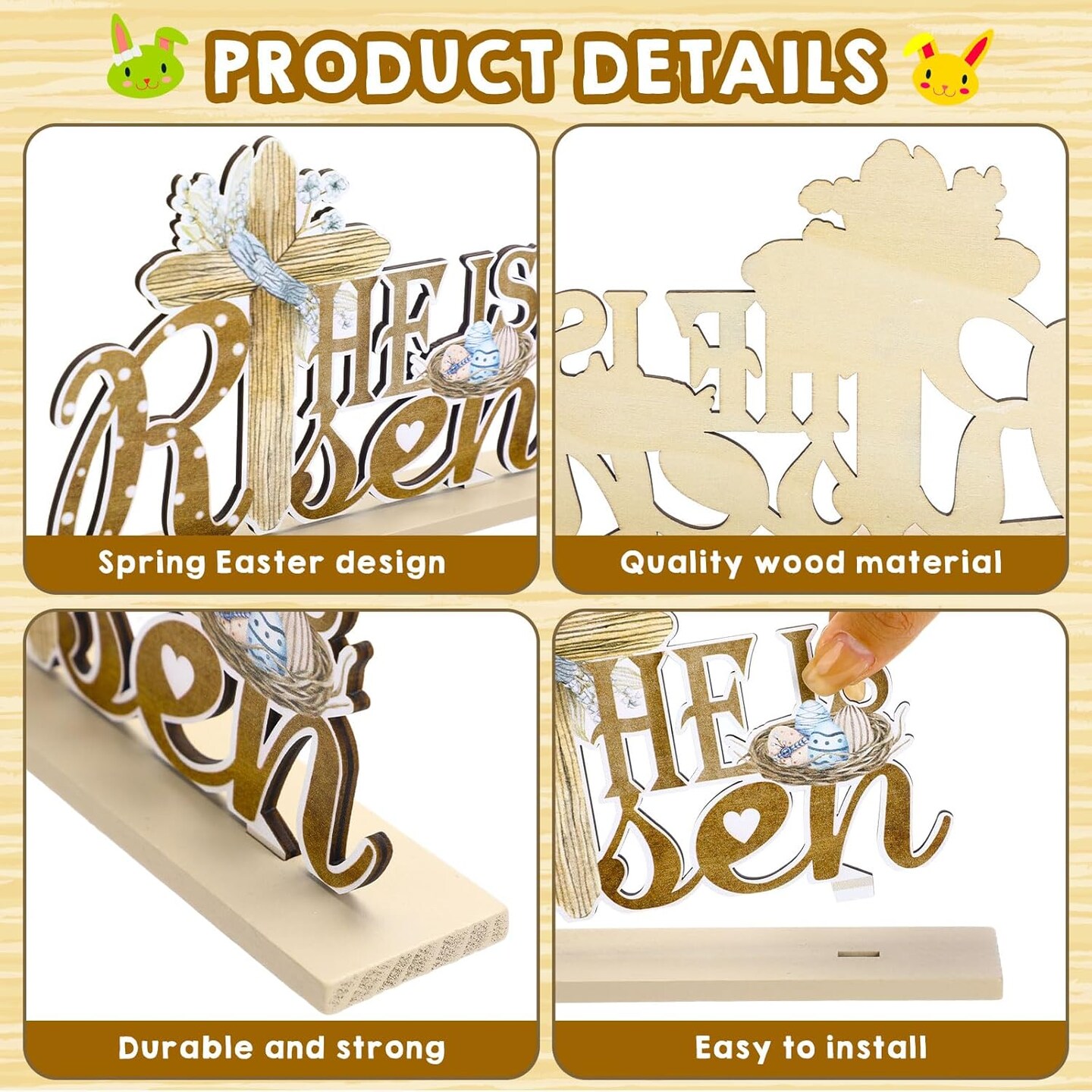 Set of 5 Easter Table Decorations – Wooden Bunny Signs with "He is Risen" for Farmhouse Rustic Home & Office Decor, Tiered Tray & Table Centerpieces