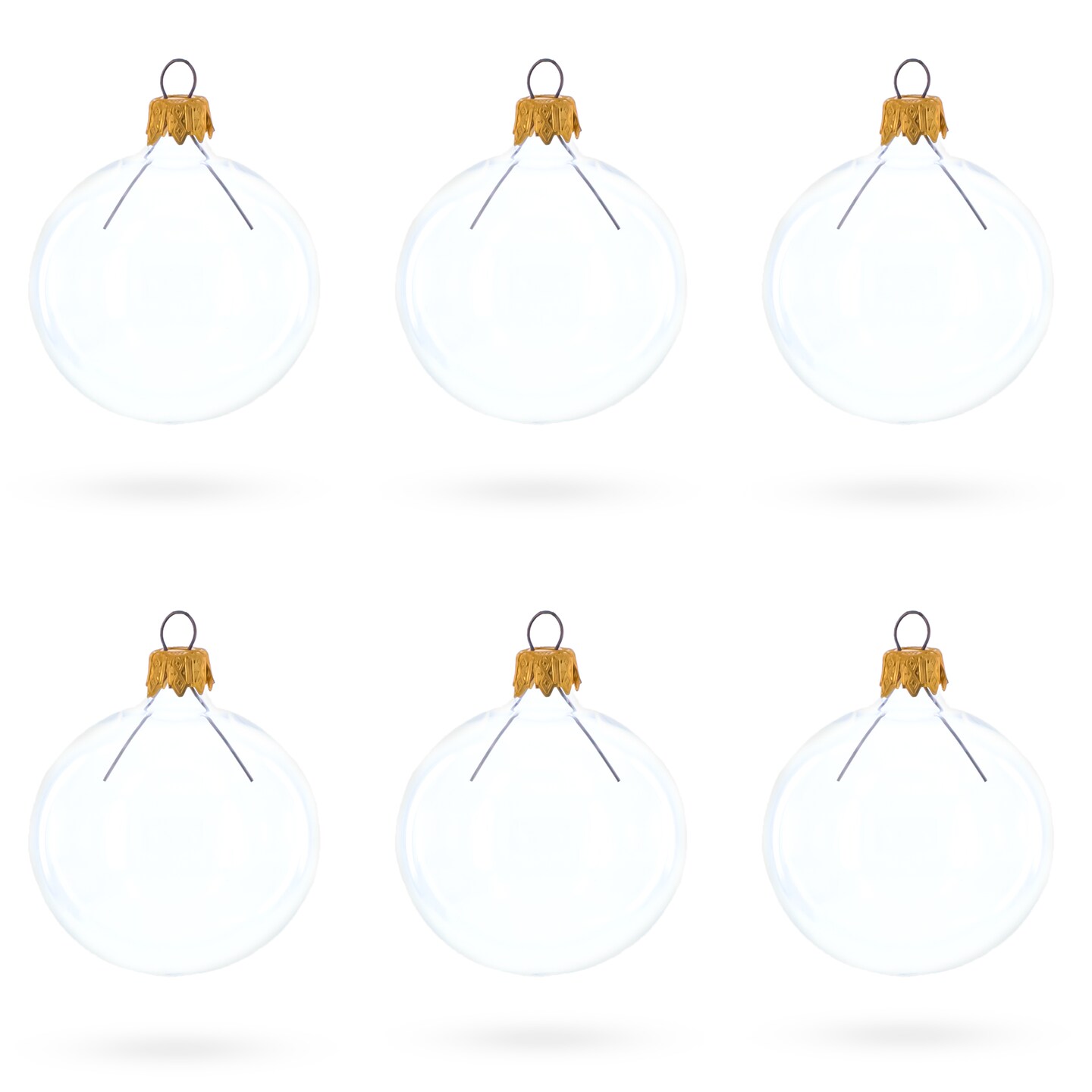 Set of 6 Clear Glass Ball Christmas Ornaments 2.4 Inches