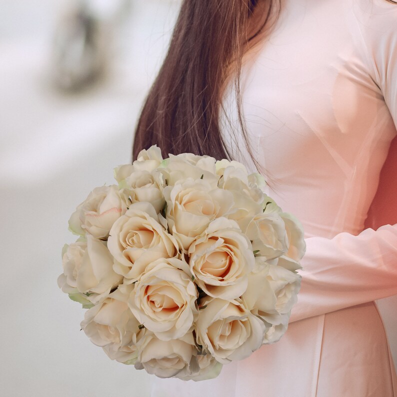Set of 6 Cream Rose Buds 20" Silk Stems for Home & Event Decor