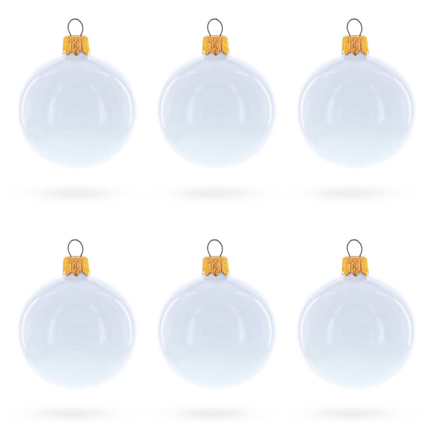 Set of 6 Glossy White Glass Ball Christmas Ornaments 2.4 Inches