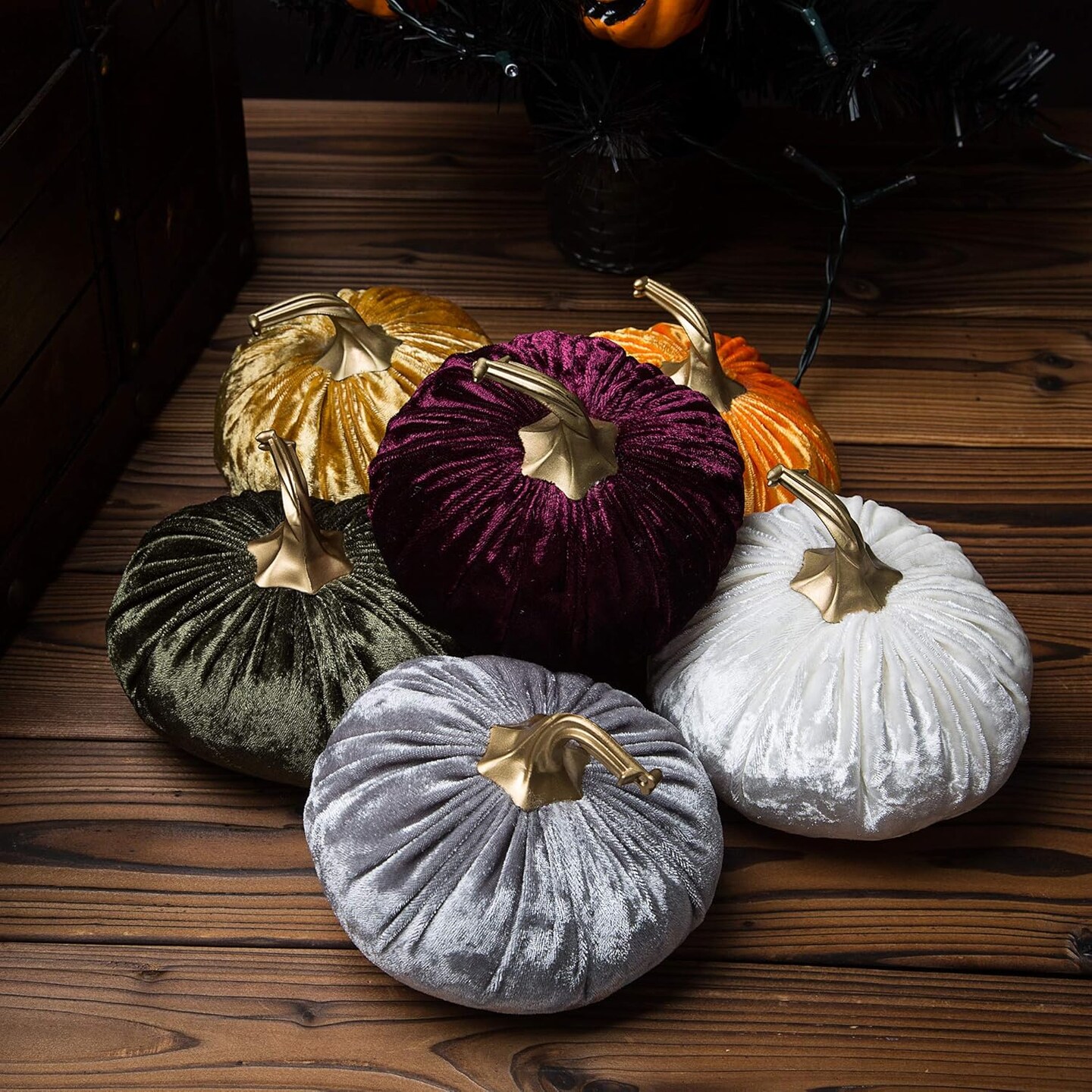 Set of 6 Pack Handmade Velvet Pumpkins Decor