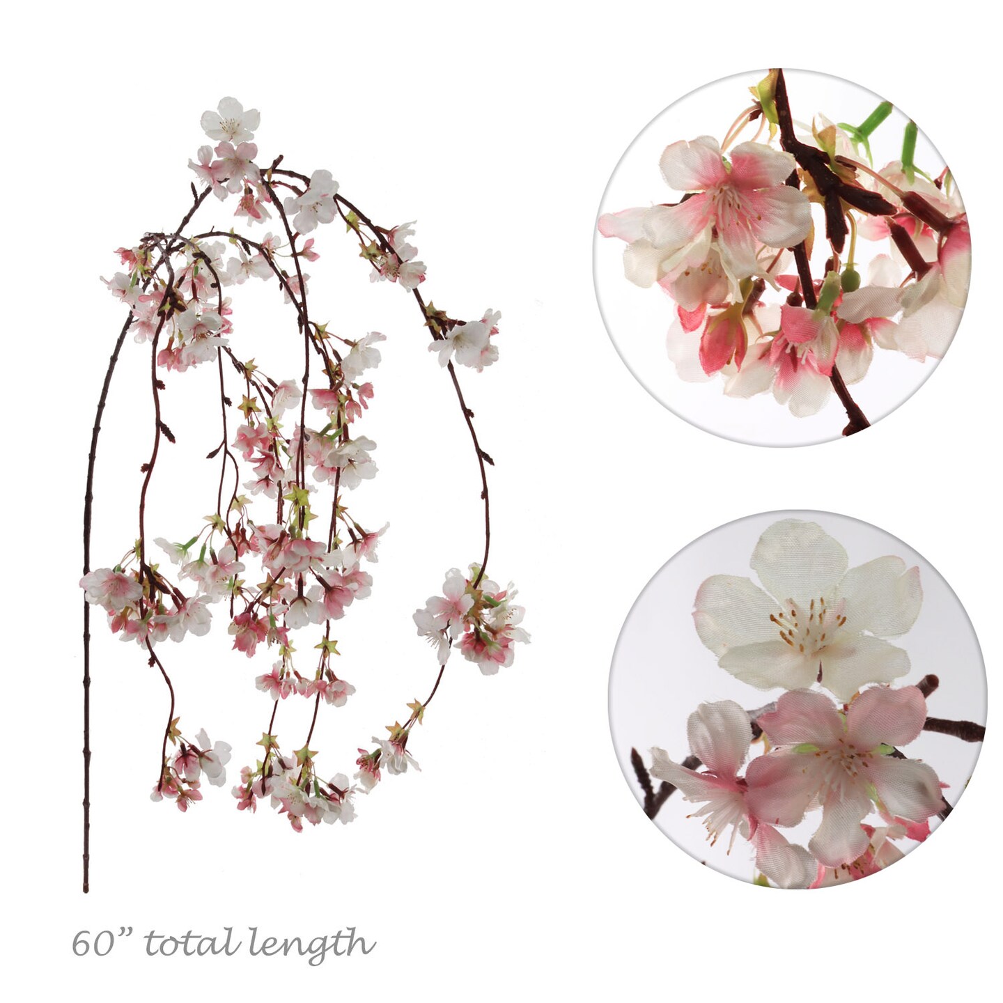 Set of 6: Pink & White Hanging Cherry Blossom Branches - Silk Flowers, Lifelike Blooms, Elegant Decor - Perfect for Weddings, Events & Spring Displays, Floral Home by Artificial Flowers