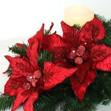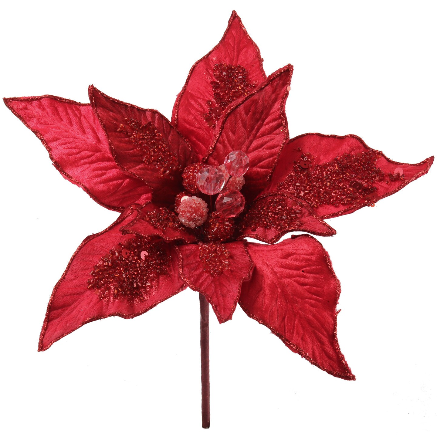 Set of 6: Vibrant Red Velvet Poinsettia Flower Stems | 11" Wide | 10 Lifelike Silk Petals | Festive Holiday Decor | Christmas Flowers | Home & Office Decor, Floral Home by Artificial Flowers