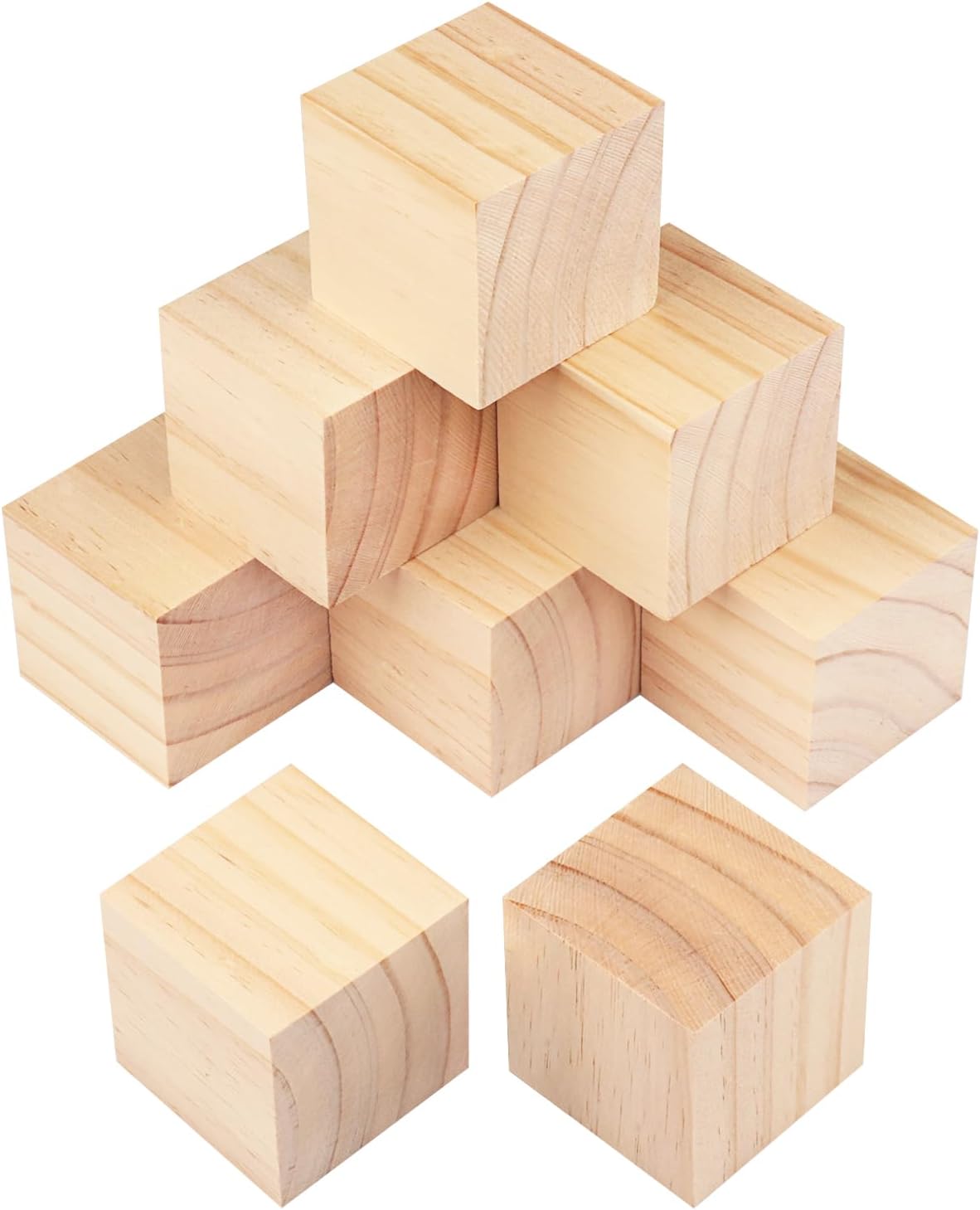 Set of 8 Pine Wood Craft Blocks, 3.15-Inch (8 × 8 × 8 cm) Cubes for Painting, Stamping, Decorating, DIY Projects, and Personalized Gifts