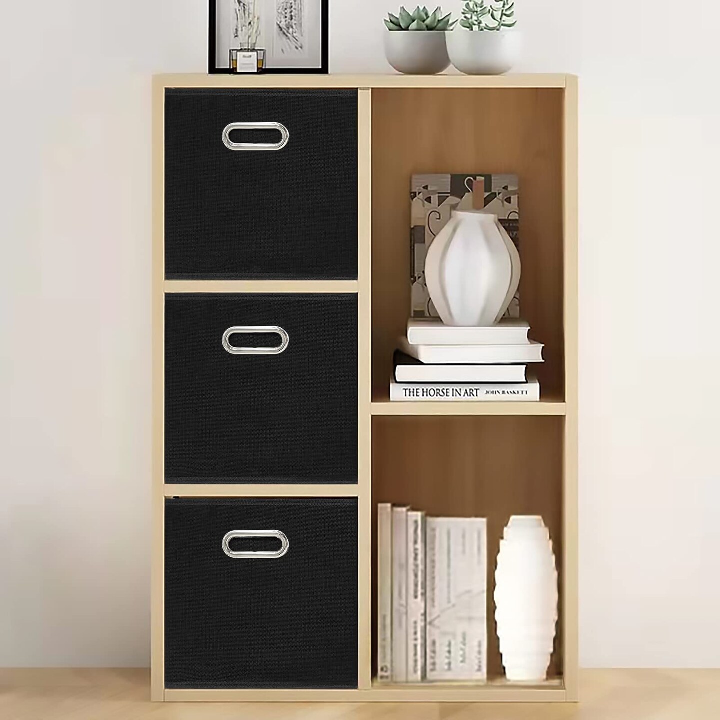 SEVENDOME Black Fabric Storage Bins Cube ,11x11x11 Fabric Cubby Organizer Baskets with Handle, Foldable Basket for Closet or Collapsible Storage Box Set of 2 (Black )