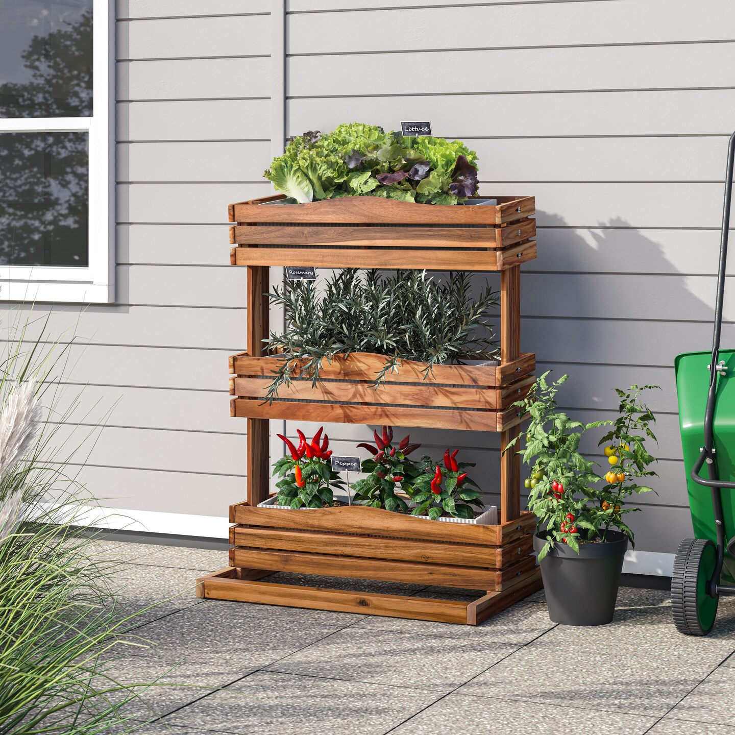 Seville Classics 3-Tier Acacia Wood Vertical Garden Planter