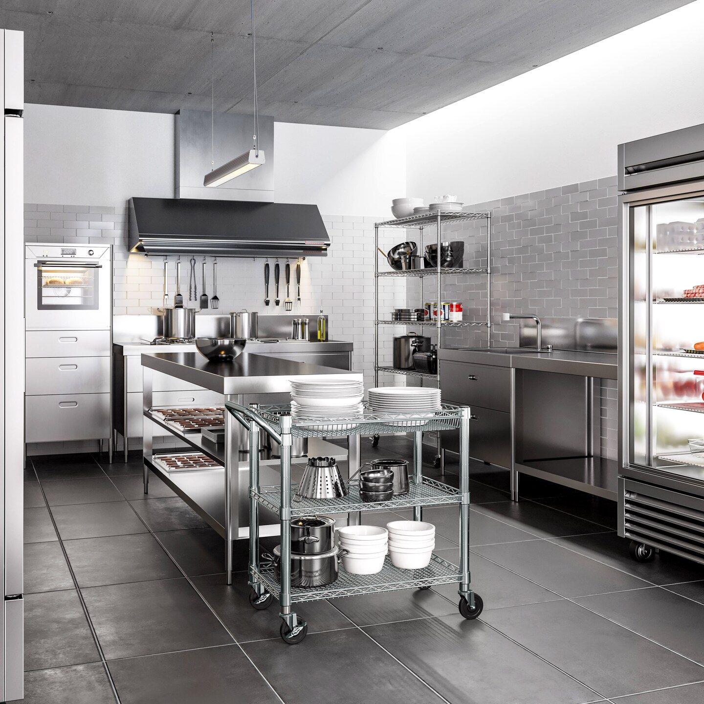 Seville Classics 3-Tier NSF Heavy-Duty Utility Cart, 34.6" W x 18.25" D x 33.8" H