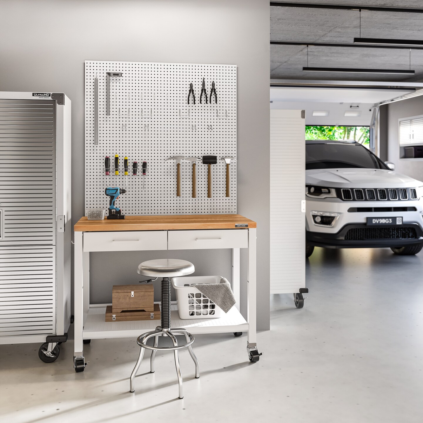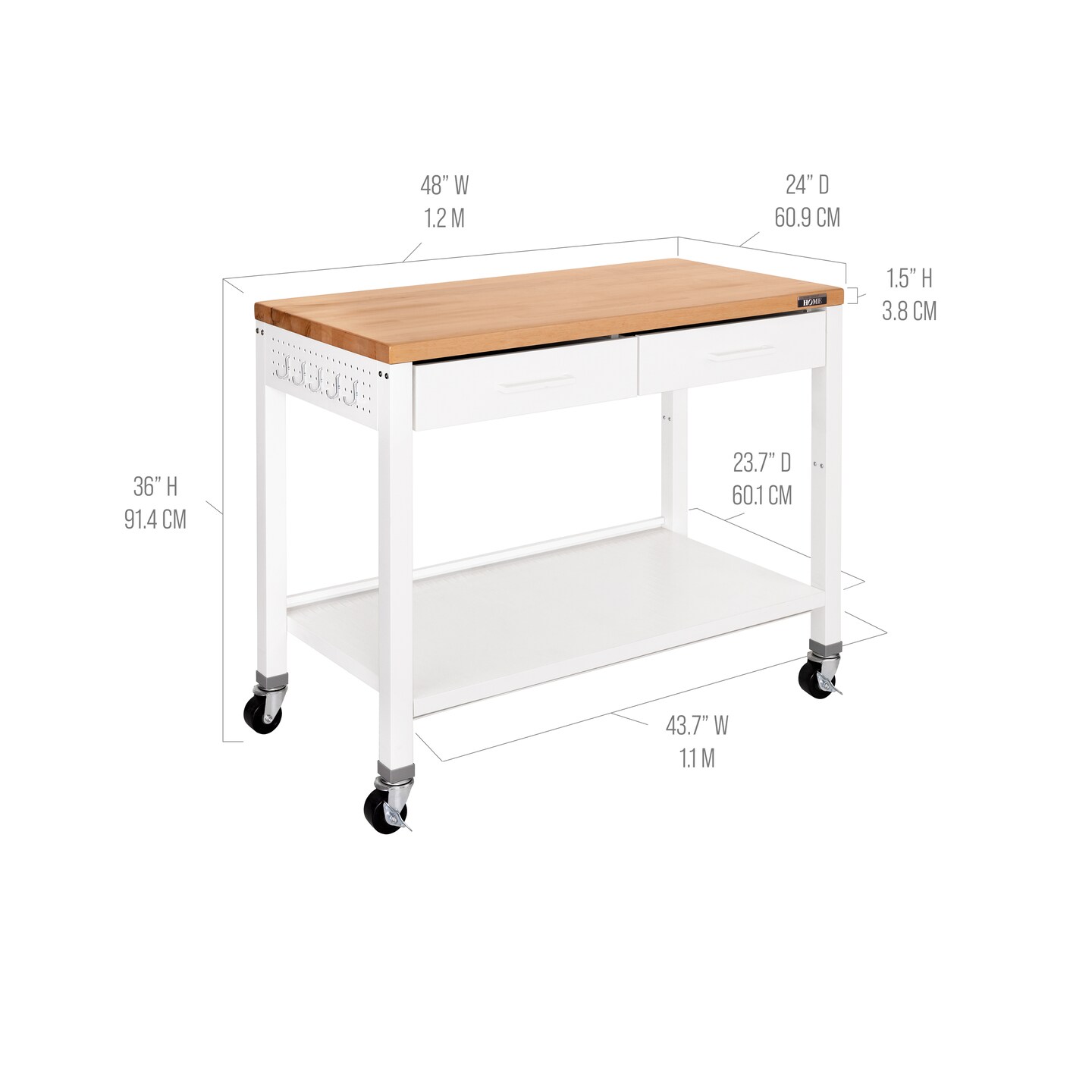 Seville Classics HOME Work Center Island Table, 48" W x 24" D x 36" H