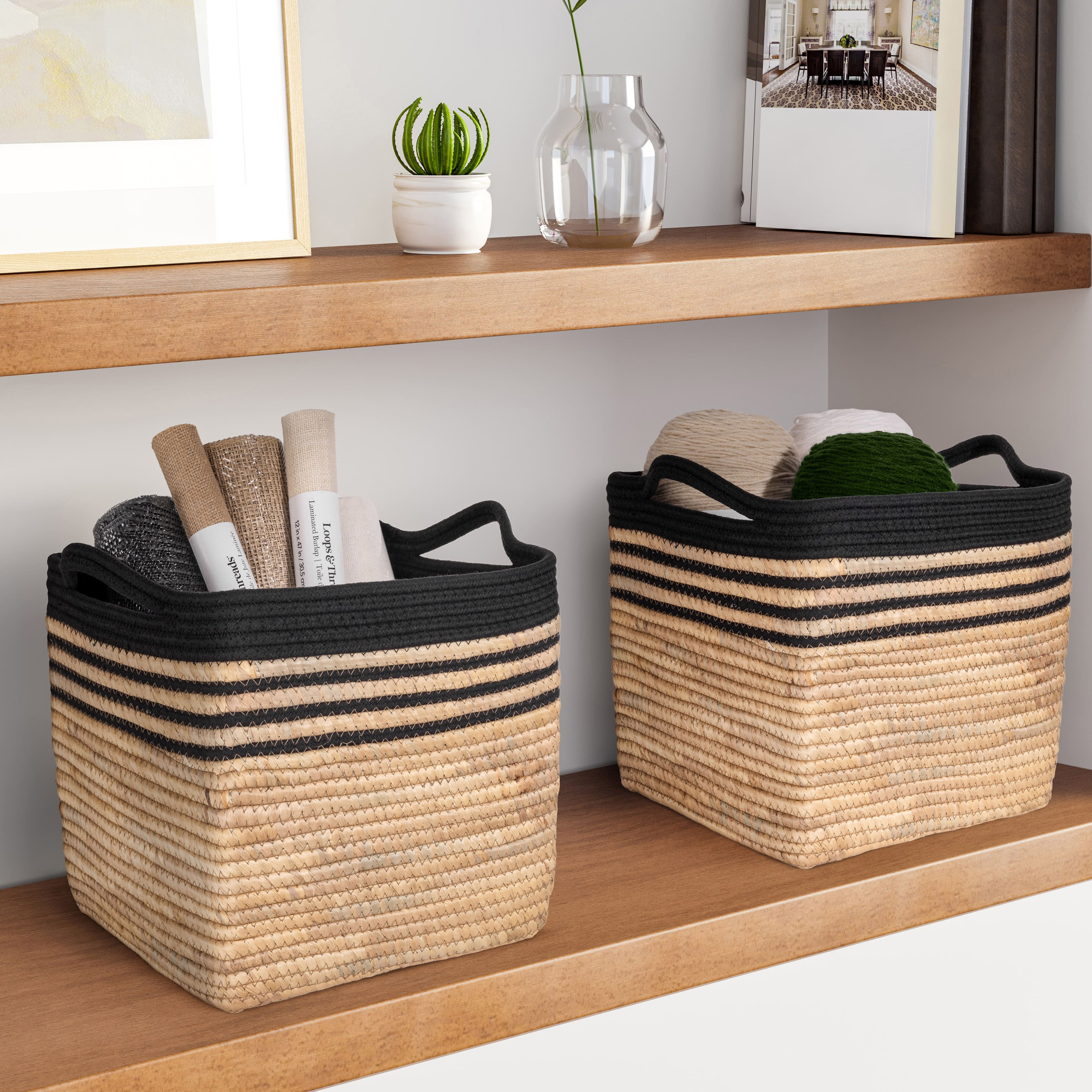 Seville Classics Medium Cube Water Hyacinth & Rope Basket