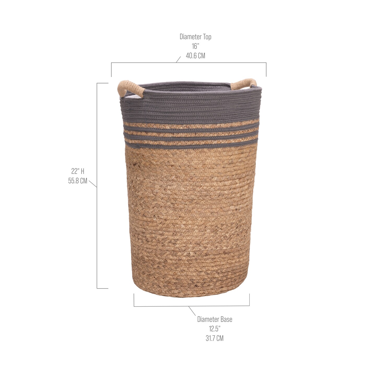 Seville Classics Natural Water Hyacinth and Rope Round Hamper with Liner