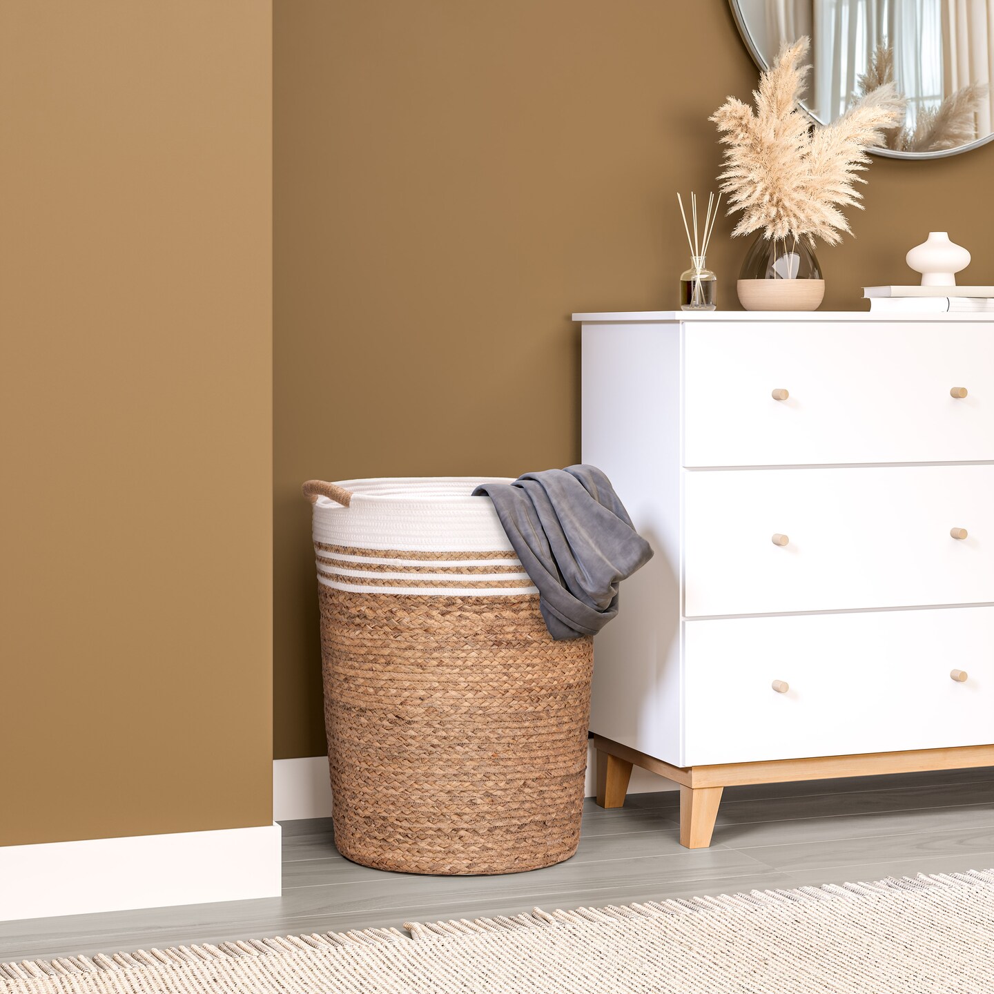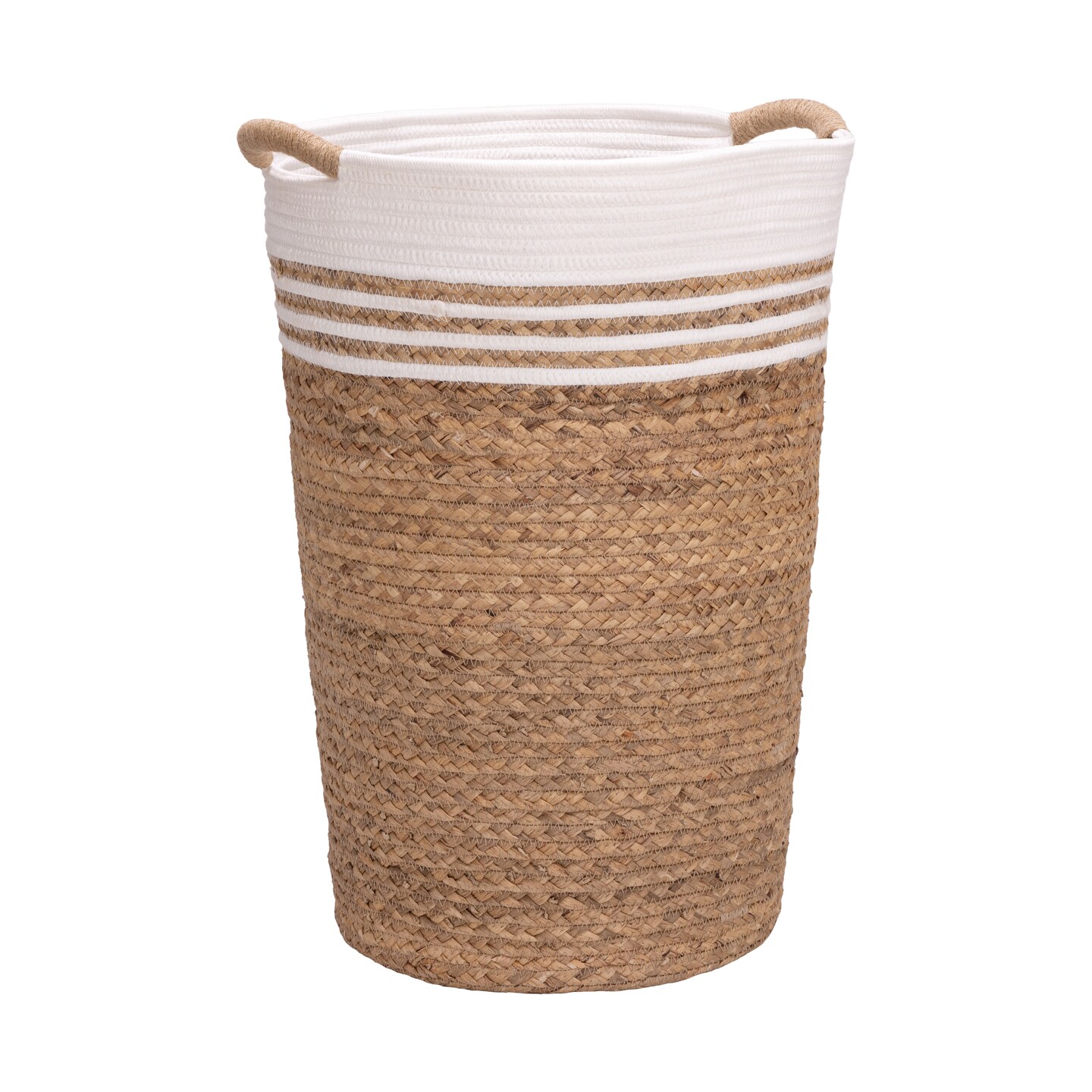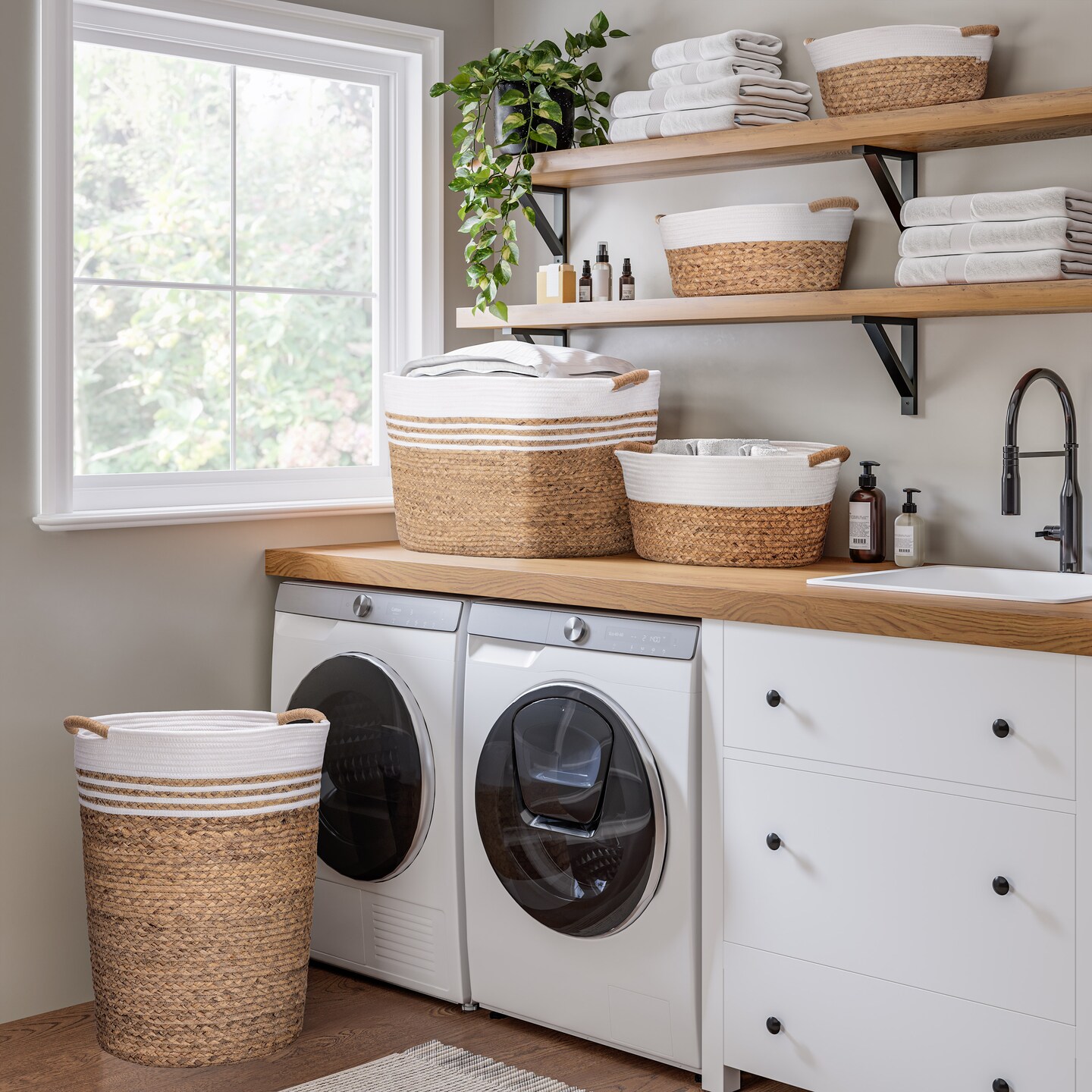 Seville Classics Natural Water Hyacinth and Rope Round Hamper with Liner