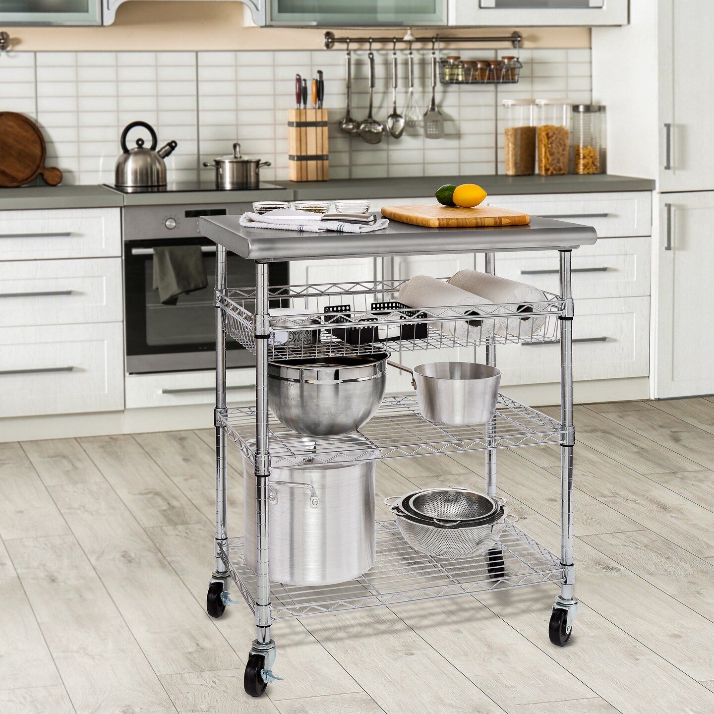 Seville Classics Stainless Steel NSF-Certified Utility Worktable Cart, 30" W x 20" D x 36" H