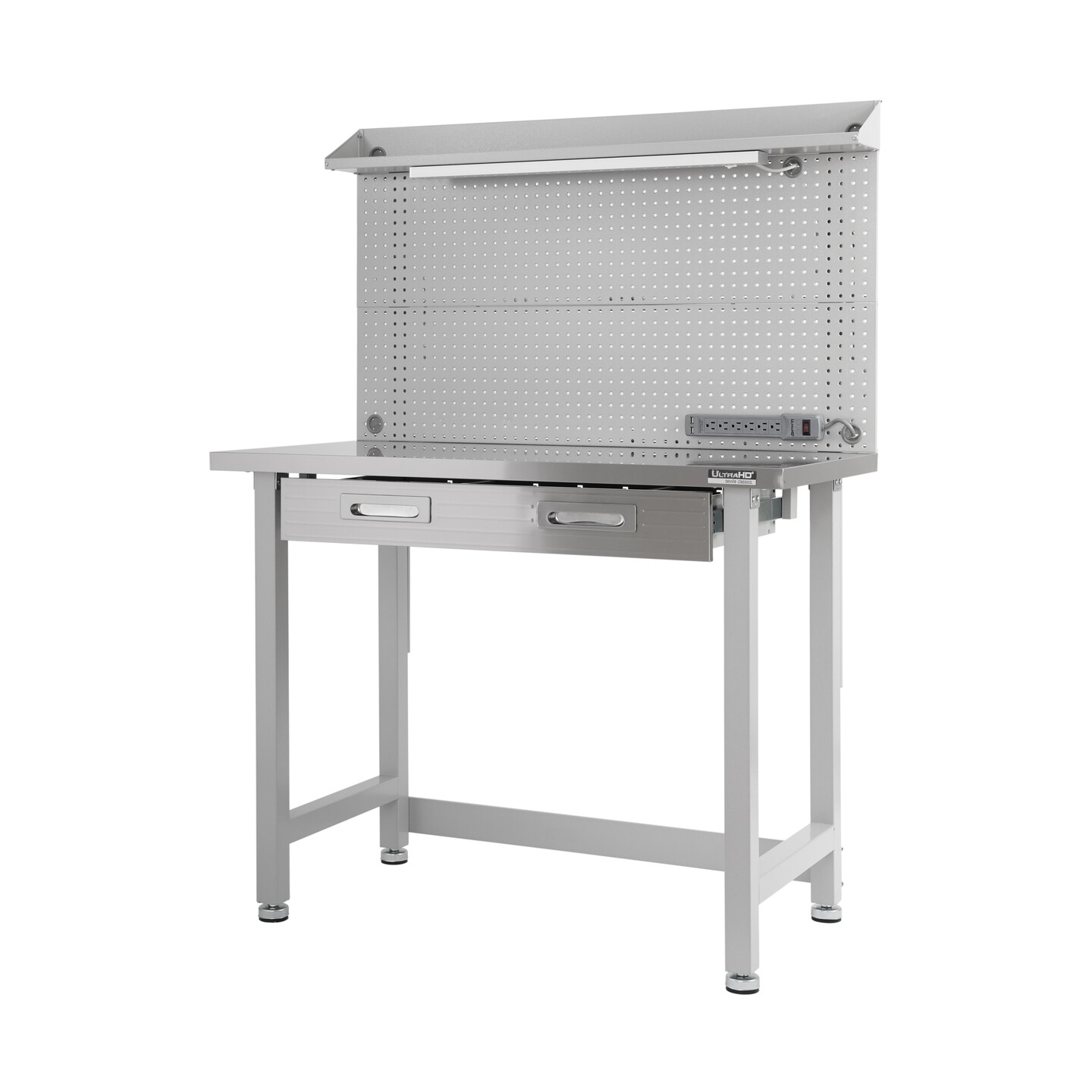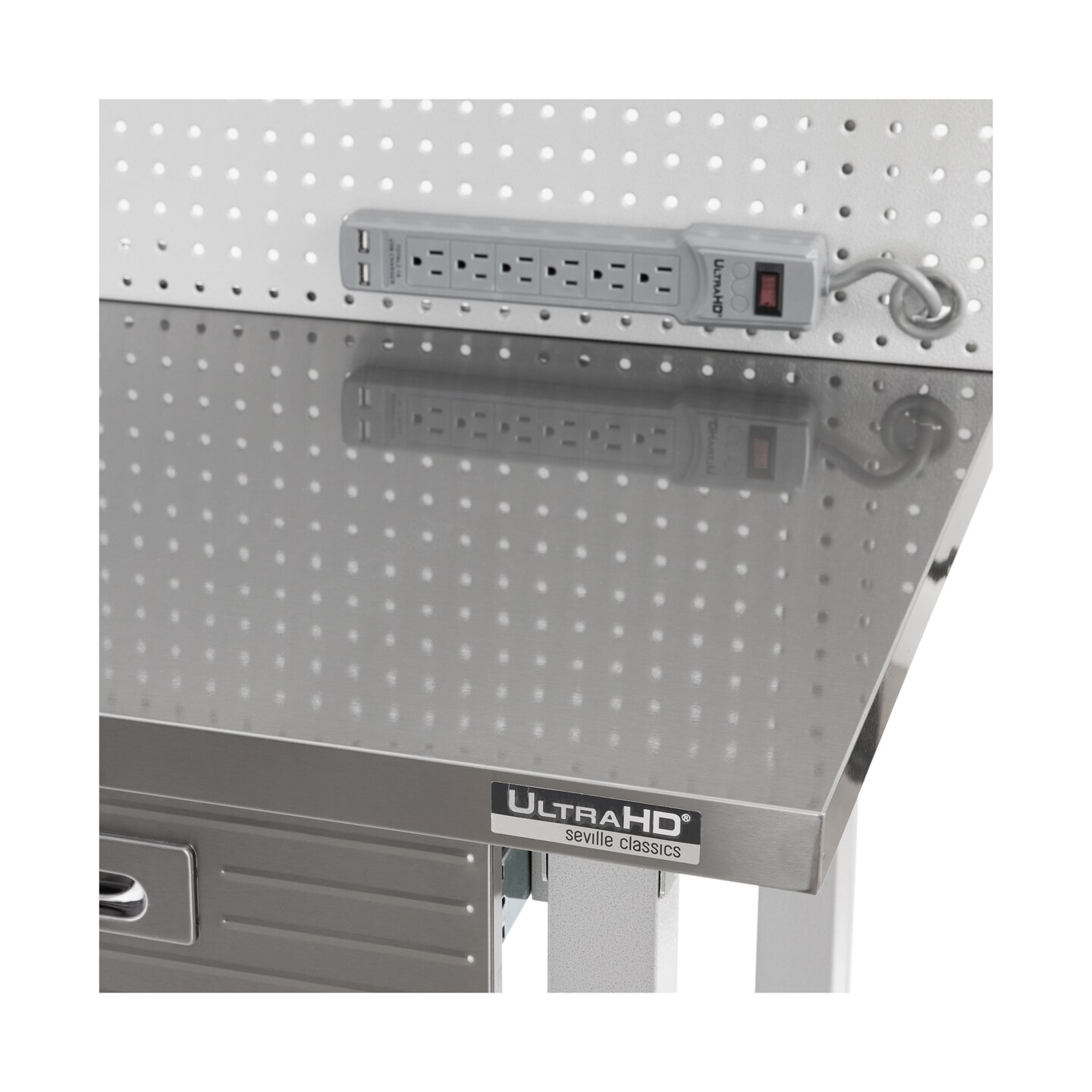 Seville Classics UltraHD Lighted Workcenter w/ Stainless Steel Top and Pegboard