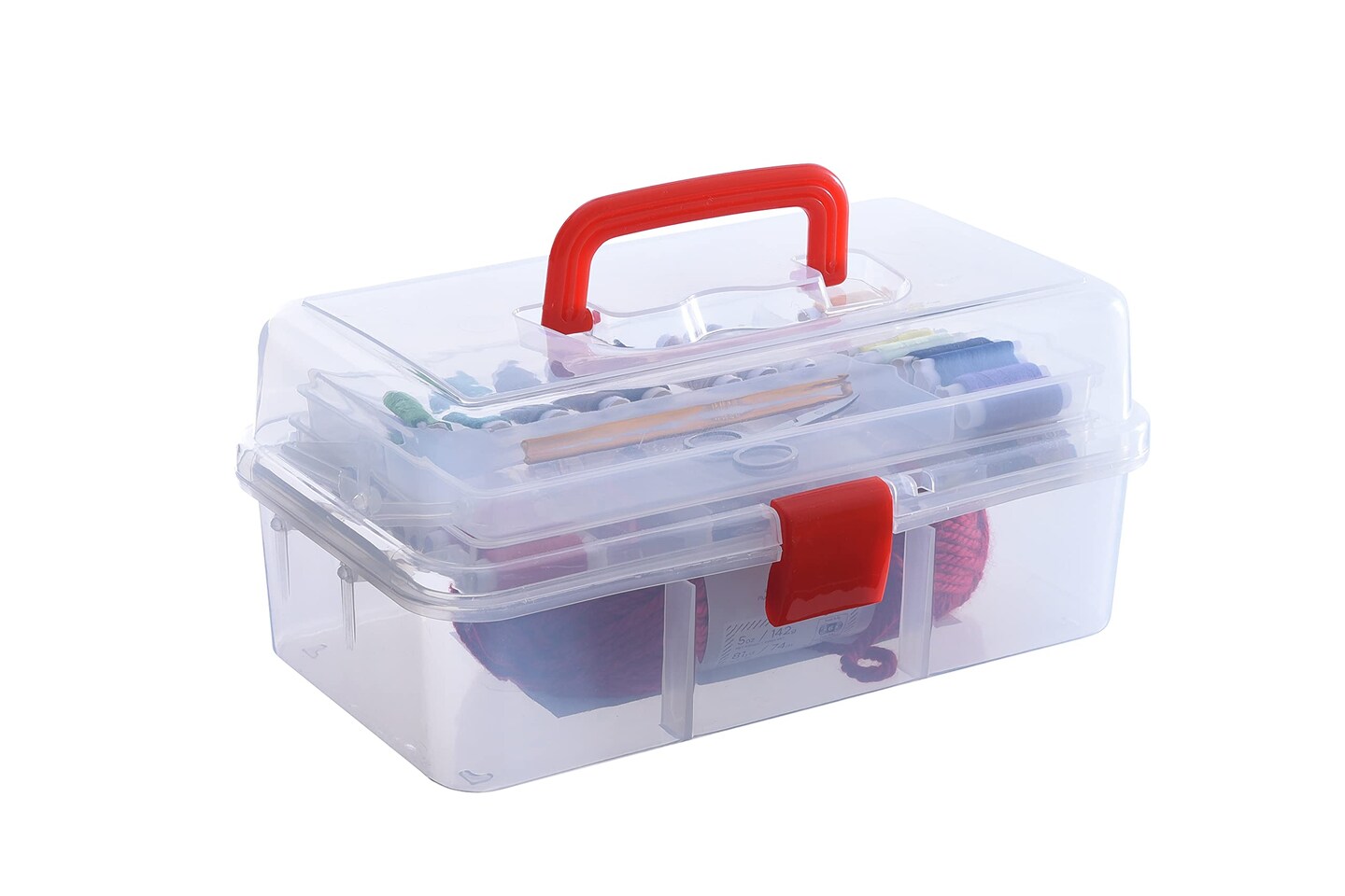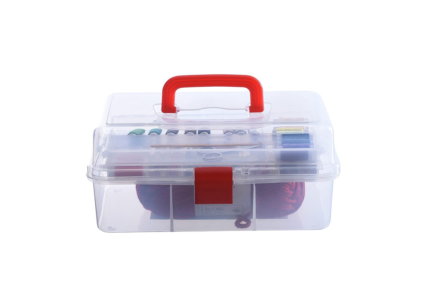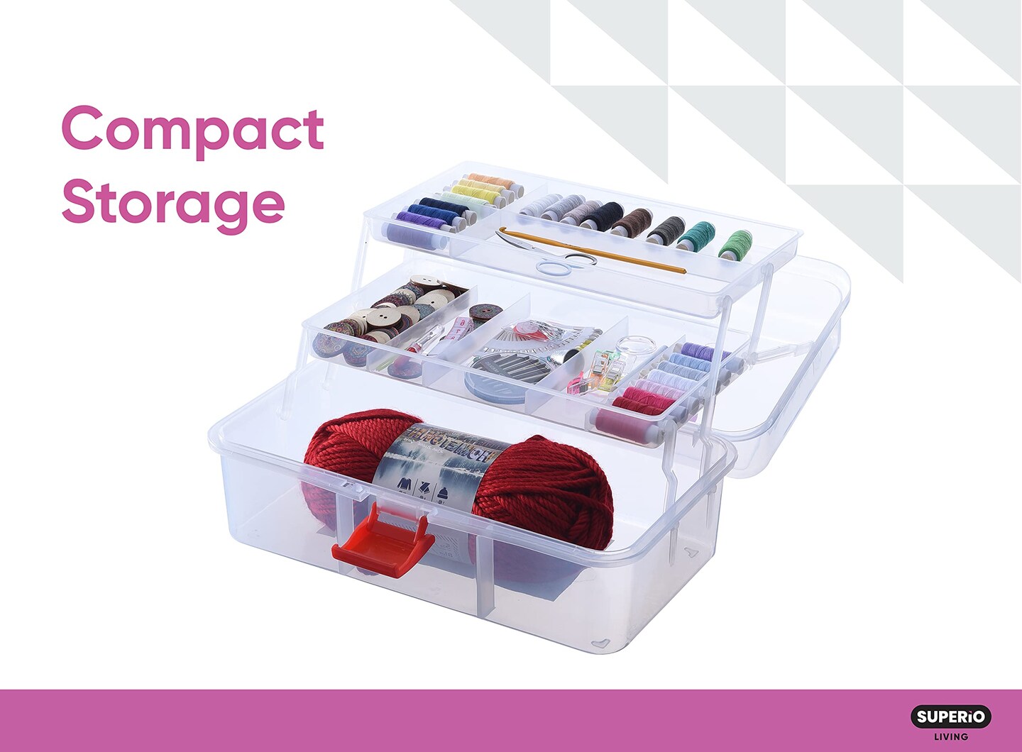 Sewing Box Artbin Sewing Organizer with Pop-Out Trays and Clear Design, 3-Layer Sewing Kit Box, Ideal for Sewing Supplies, Craft Materials, and Small Items - Multipurpose Organizer
