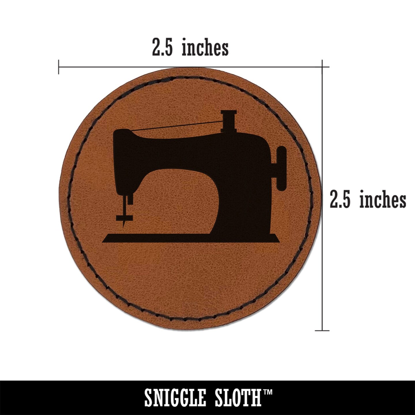 Sewing Machine Silhouette Round Iron-On Engraved Faux Leather Patch Applique - 2.5"