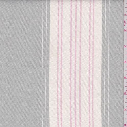 Shabby Chic Pink/Gray/Ivory Stripe Twill Fabric By the Yard