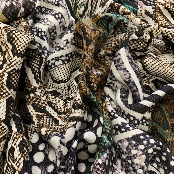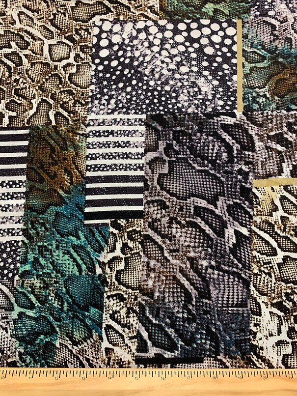 Shades of Gray Multi Animal Patchwork Print Rayon Challis Fabric By the Yard