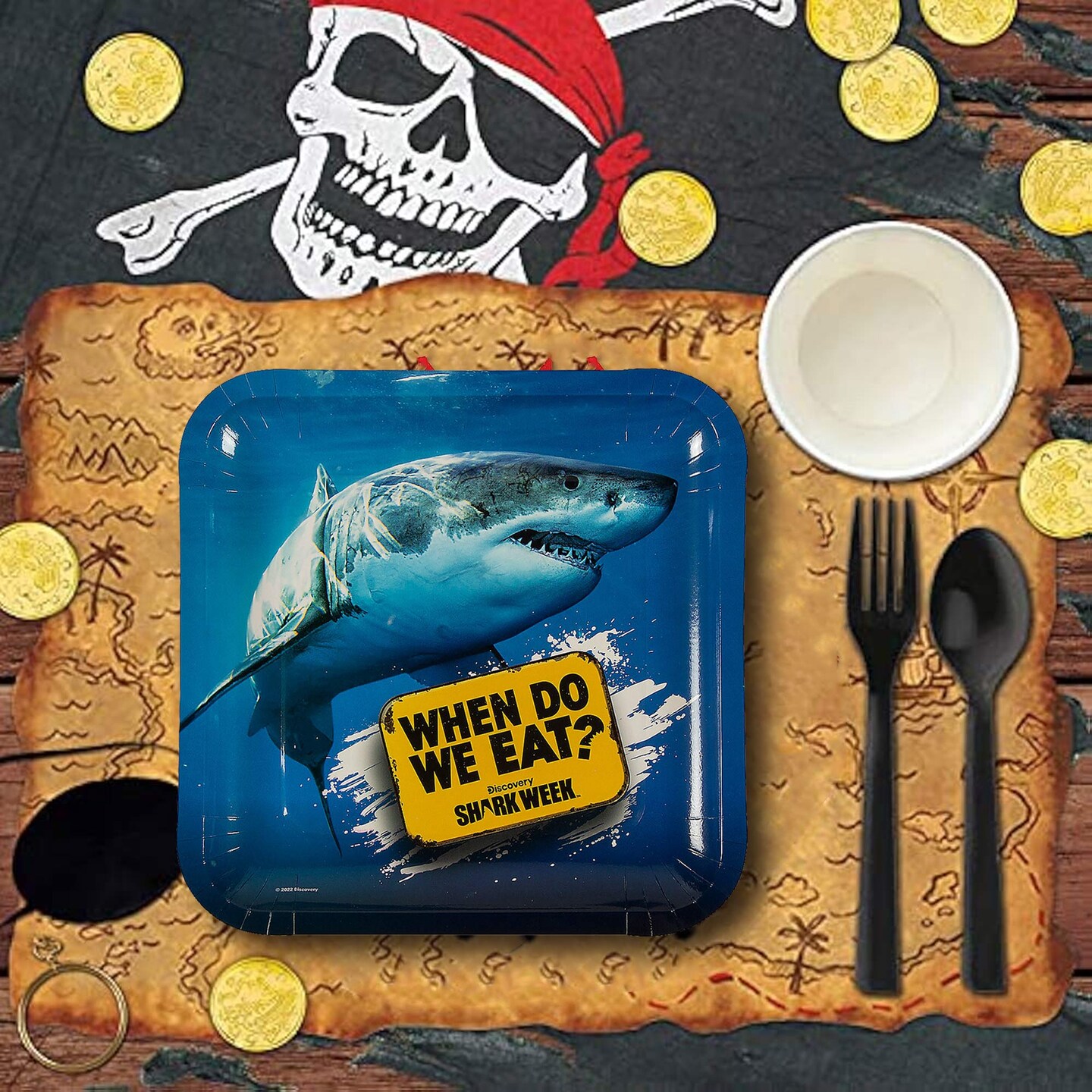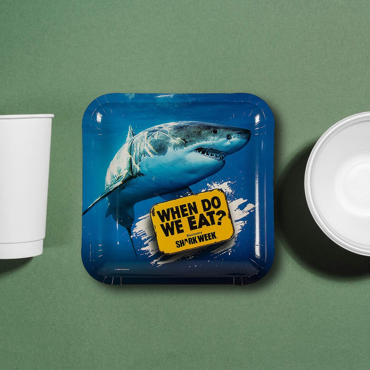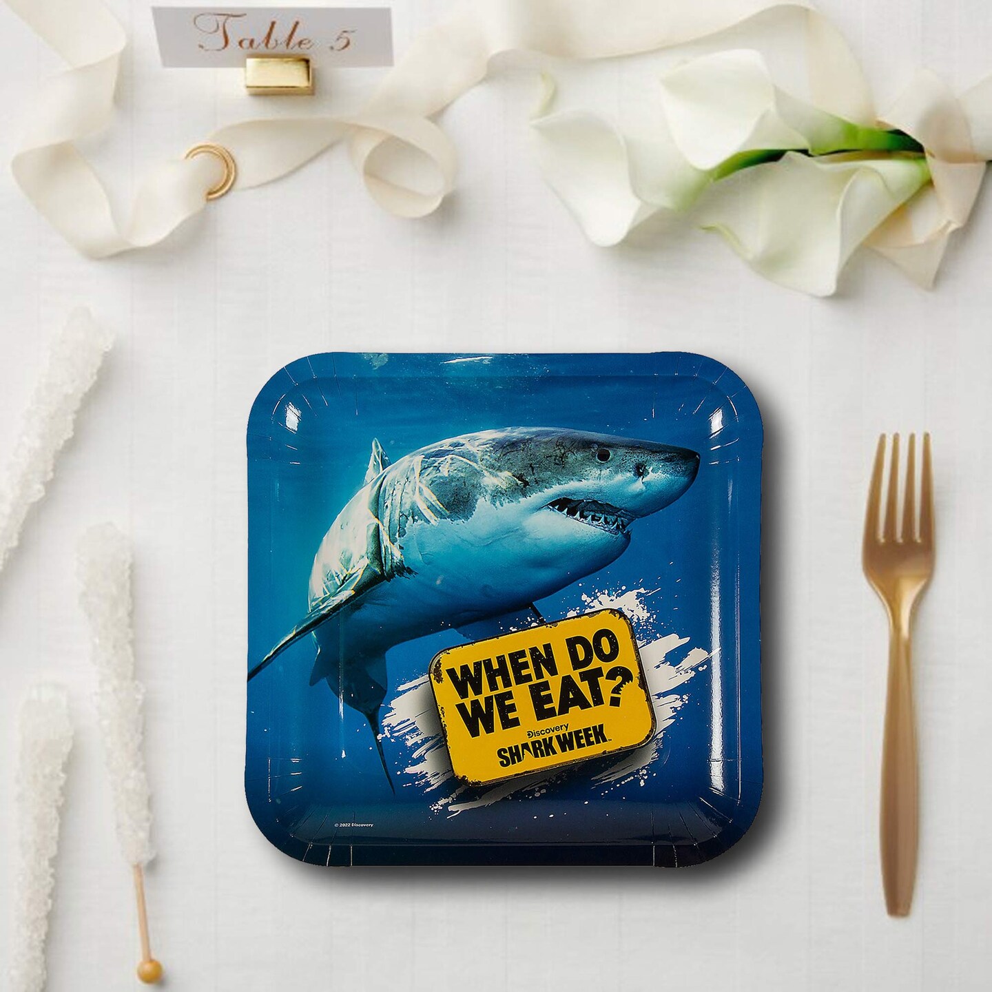 Shark Week Warning Sign Square Paper Plates 9 Inch 8 Count for Sea Life Party
