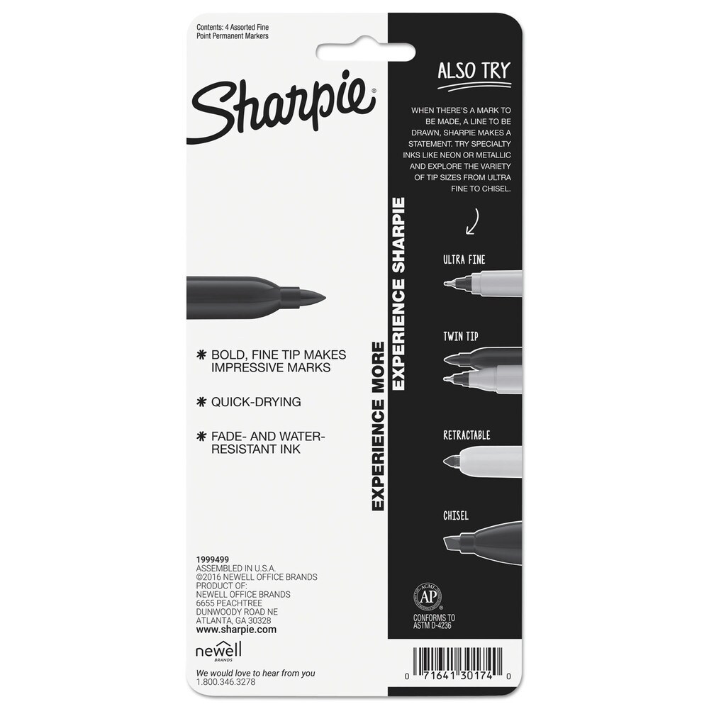 Sharpie Fine Bullet Tip Permanent Marker - Assorted Colors (4/Set)