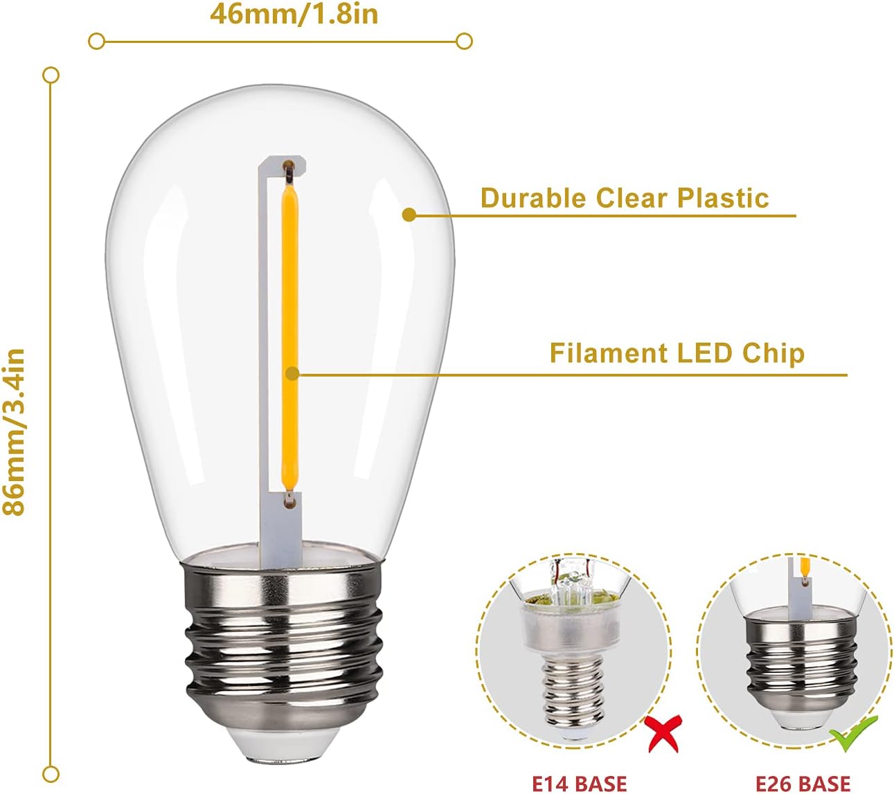 Shatterproof LED String Lights – 15 Pack, Warm White 2200K, Waterproof, E26 Base for Indoor & Outdoor Use