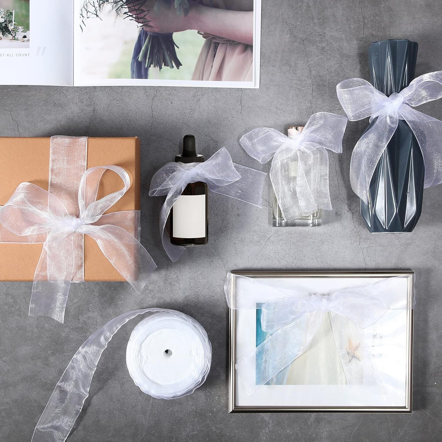 Sheer Organza Ribbon for Gift Wrapping Chiffon Tulle Mesh Ribbon Clear Wedding Christmas Tree Decor DIY Crafts