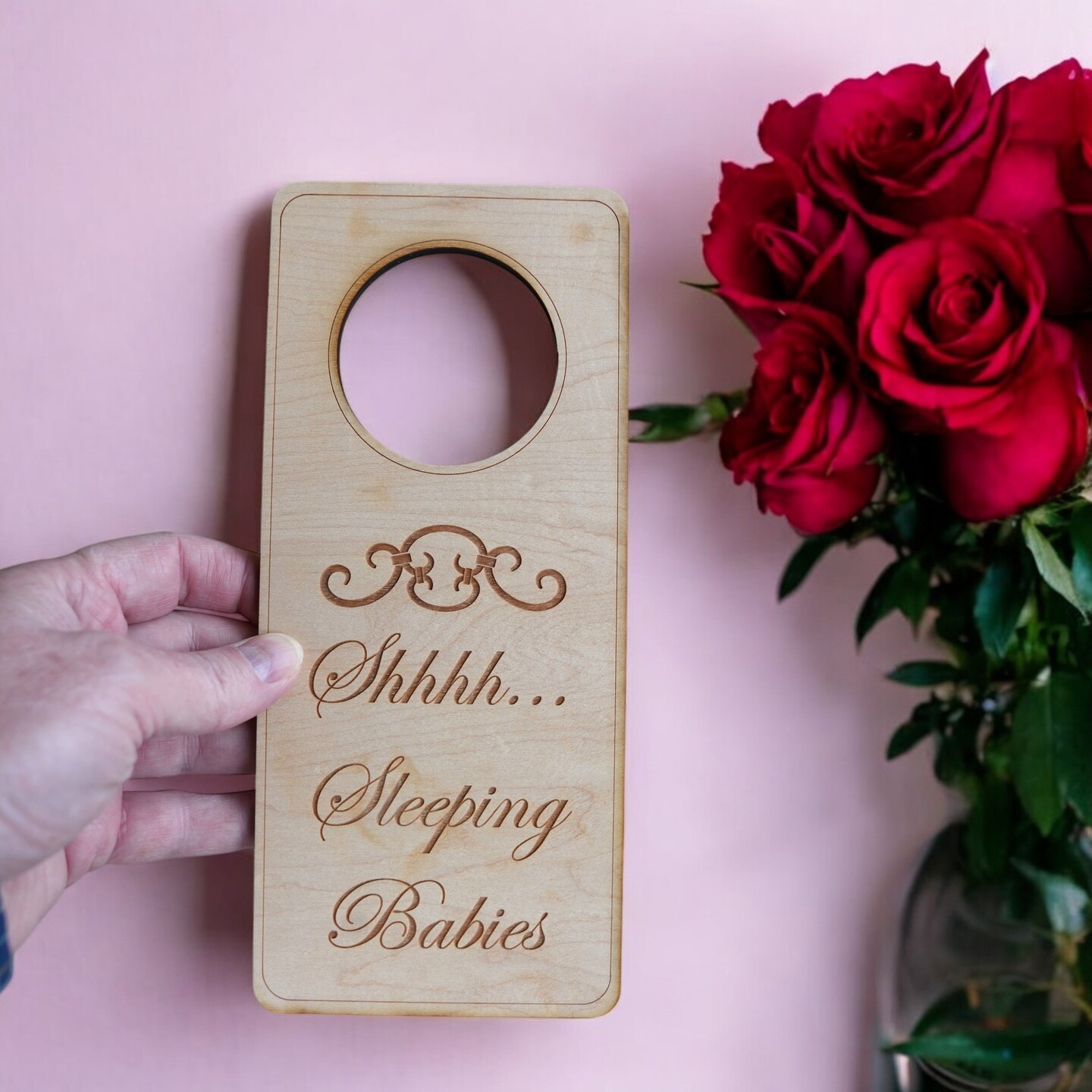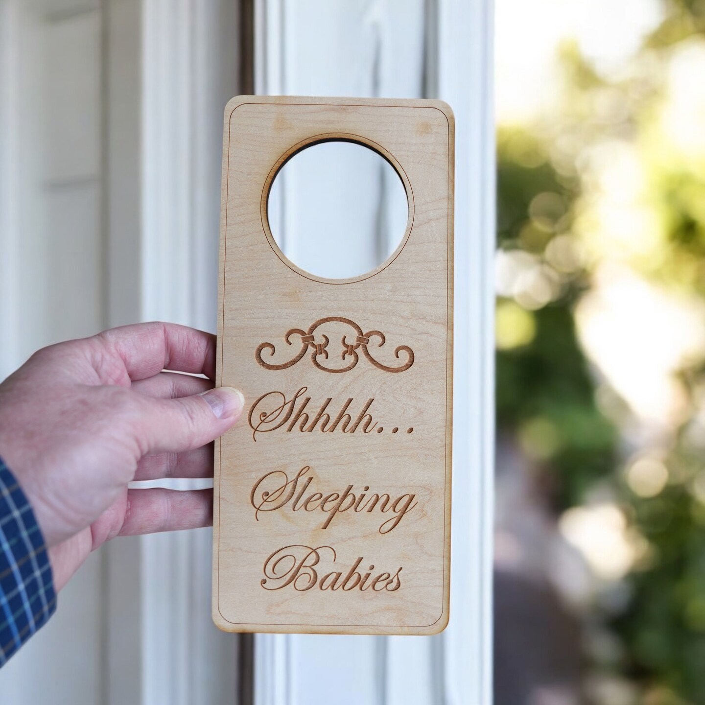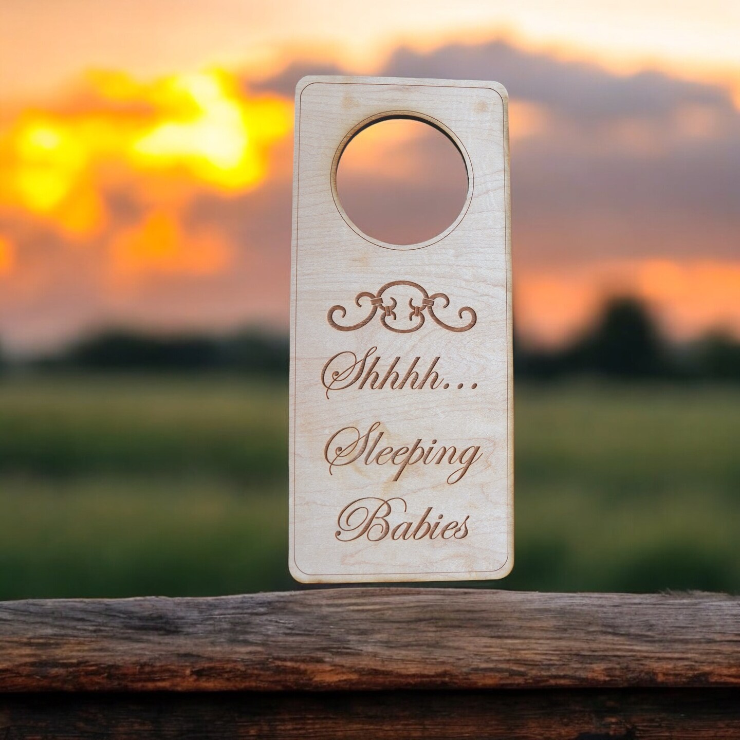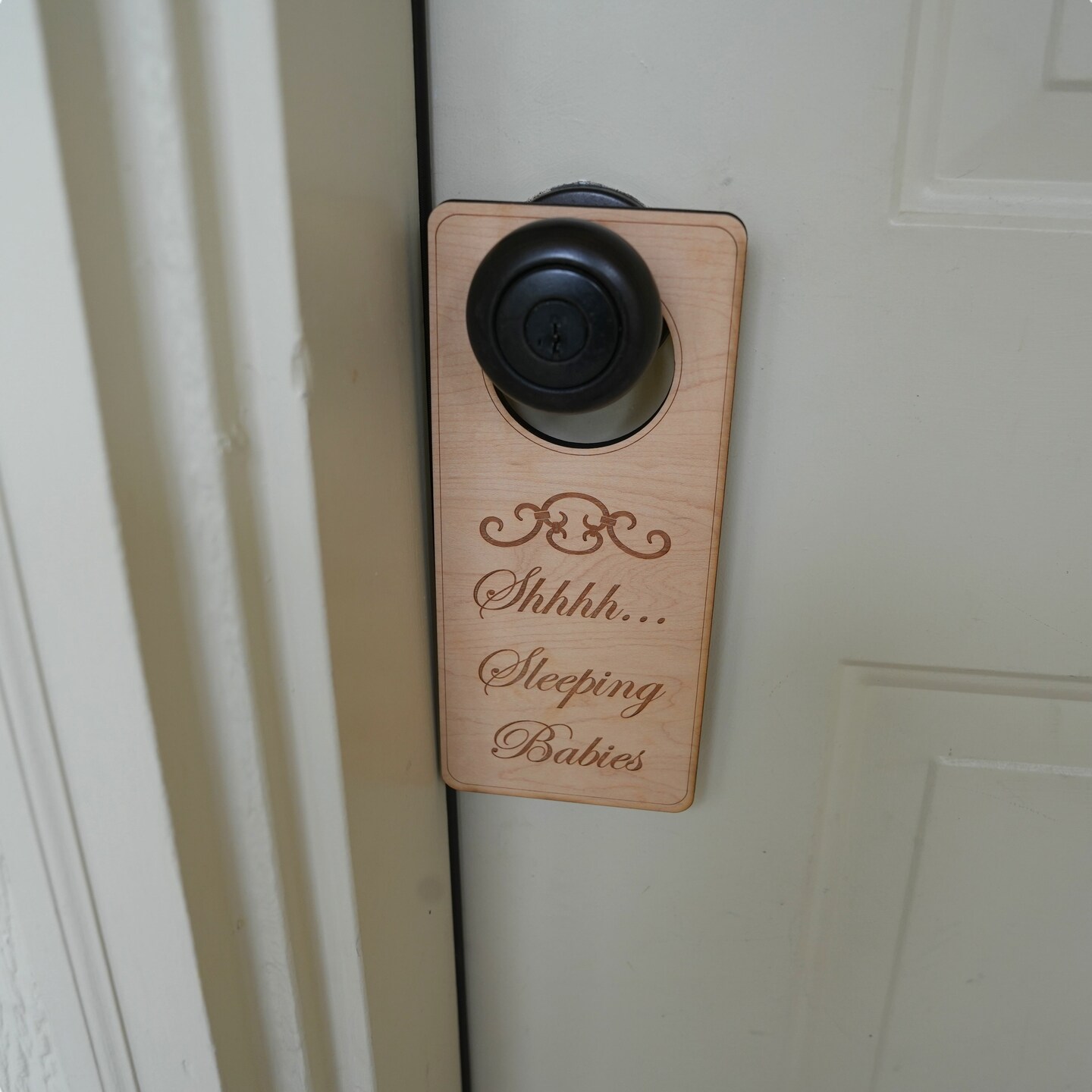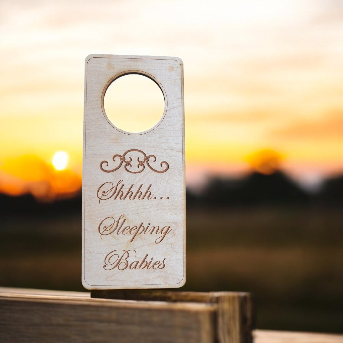Shh Sleeping Babies Door Sign - Raw Wood