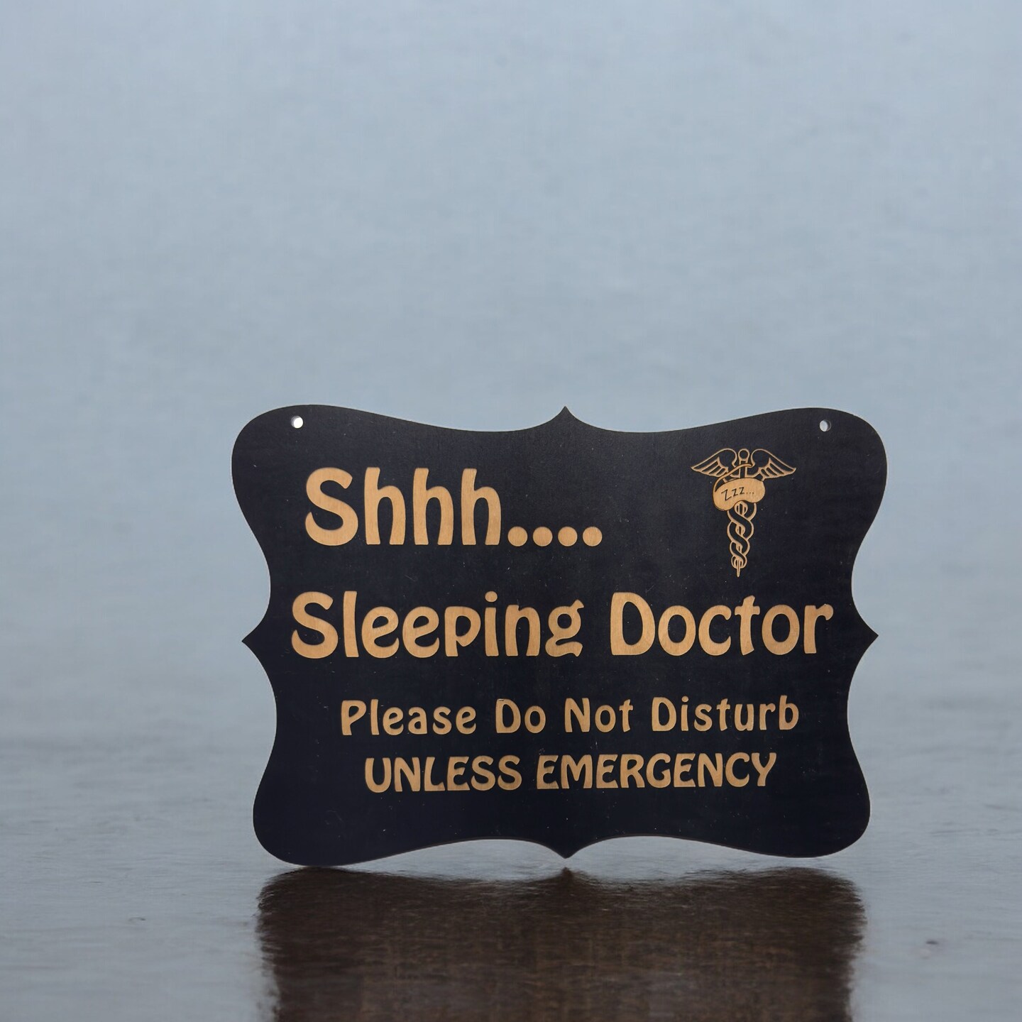 Shhh Sleeping Doctor Door Sign 9x6.5in Painted Wood