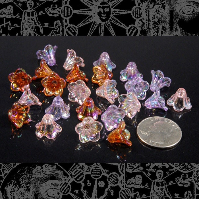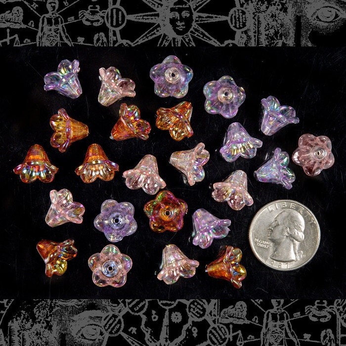Shimmery Plastic Flower Caps Combo Eight Lilac - Eight Pink and Eight Red - Set of Twenty-Four - PLC-Combo1