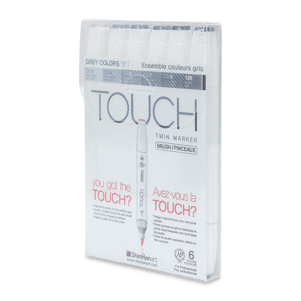 ShinHan Touch Twin Brush Markers - Set of 6, Greys