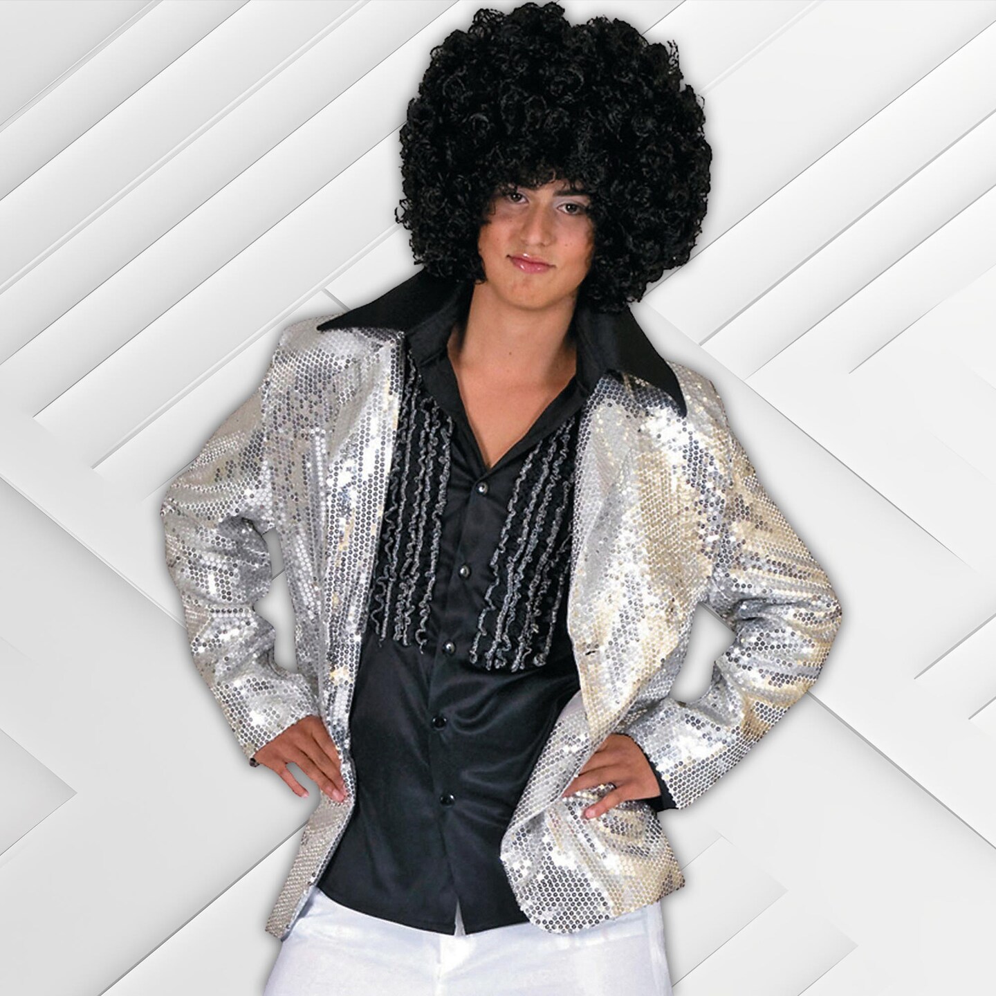 Shiny Mens Silver Disco Jacket Sequin Polywoven Costume Party Outfit