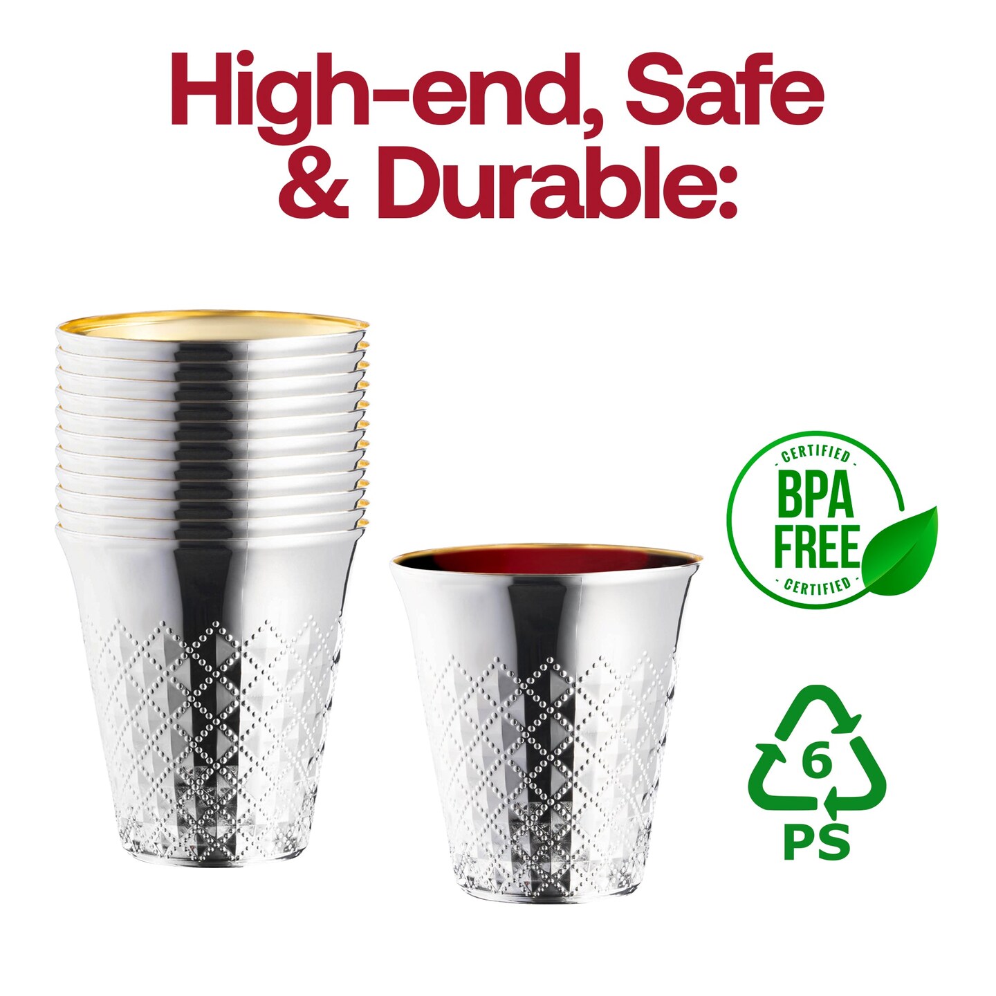 Shiny Metallic Aluminum Silver Round Plastic Kiddush Cups - 5 oz. (300 Cups)