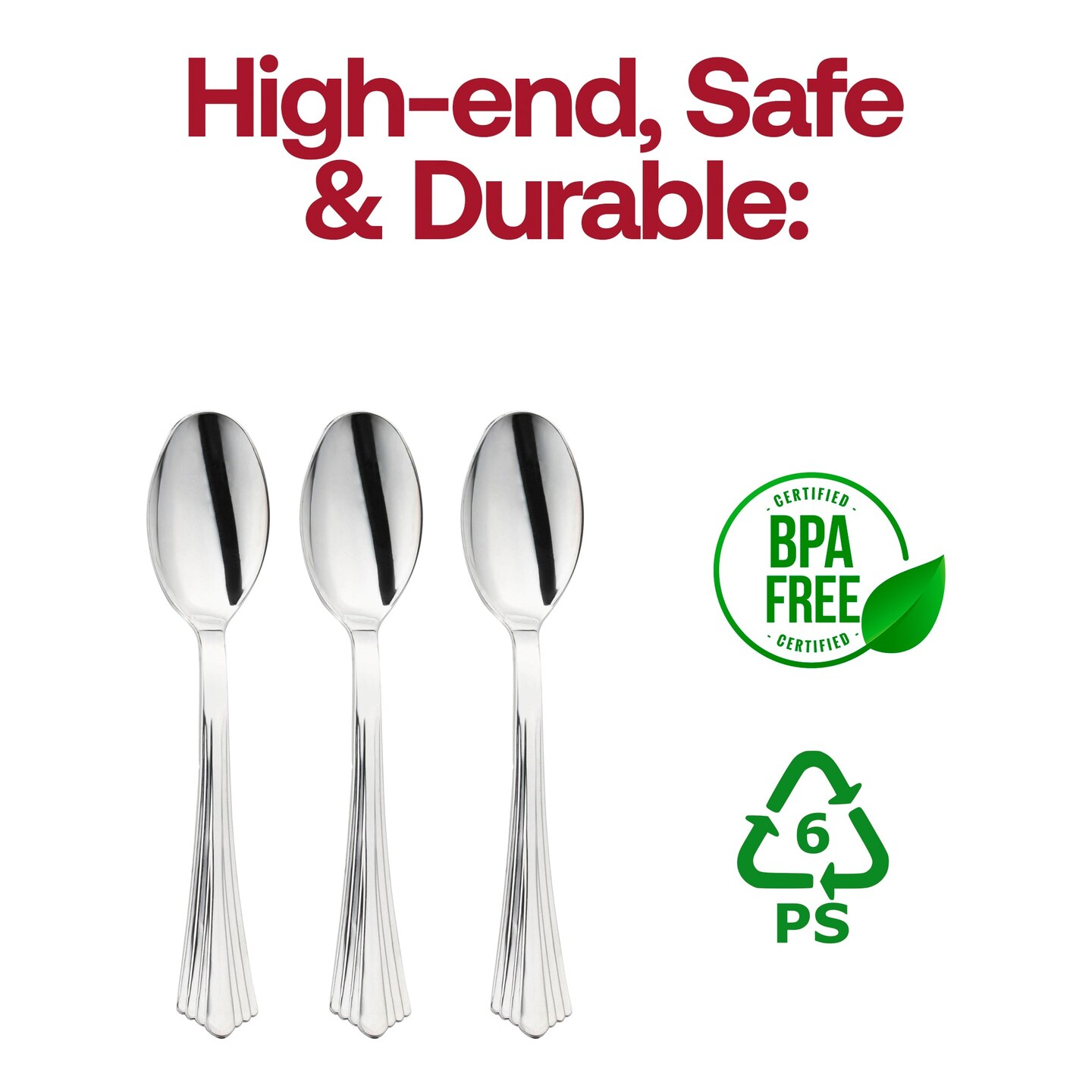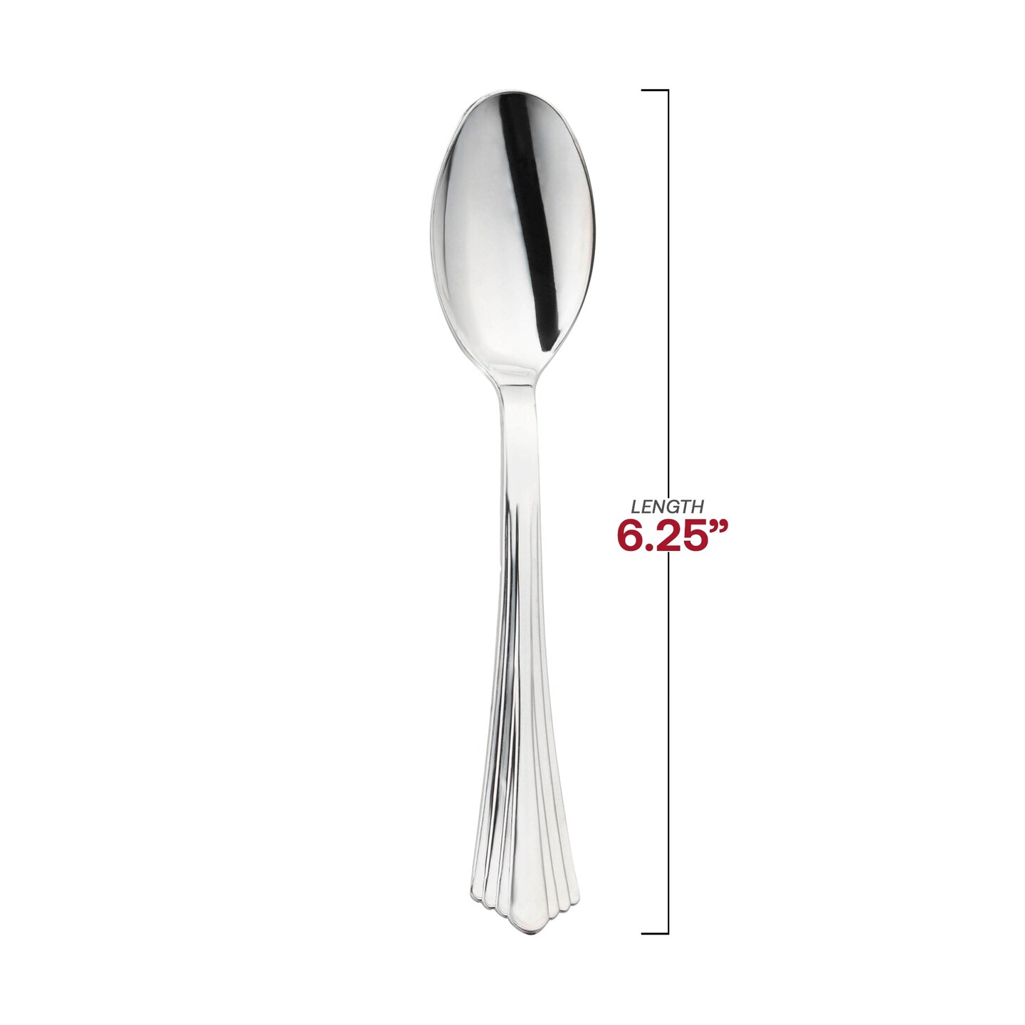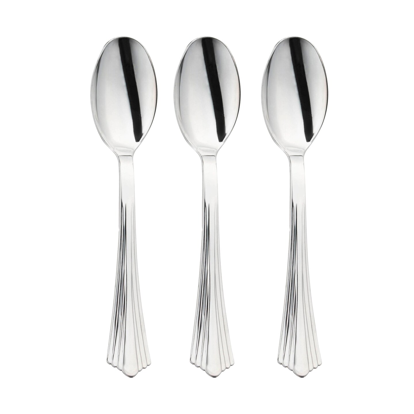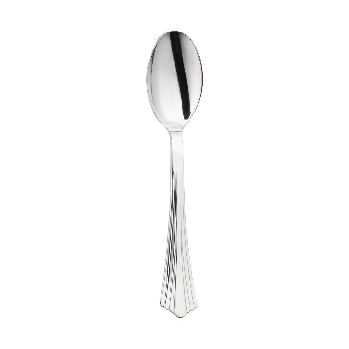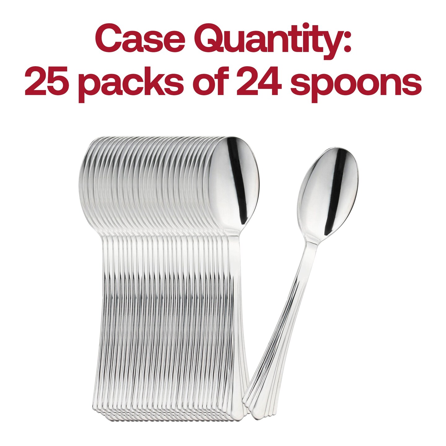Shiny Metallic Groove Silver Plastic Spoons (600 Spoons)