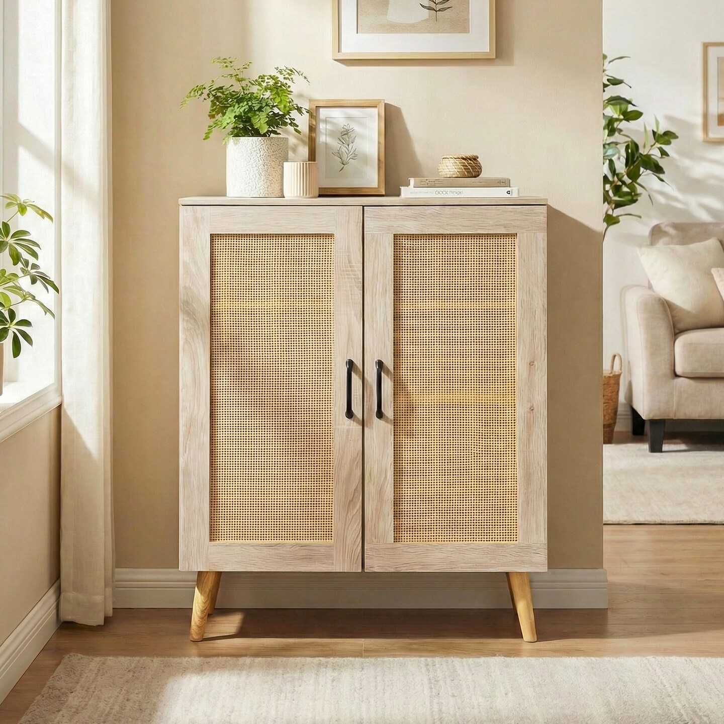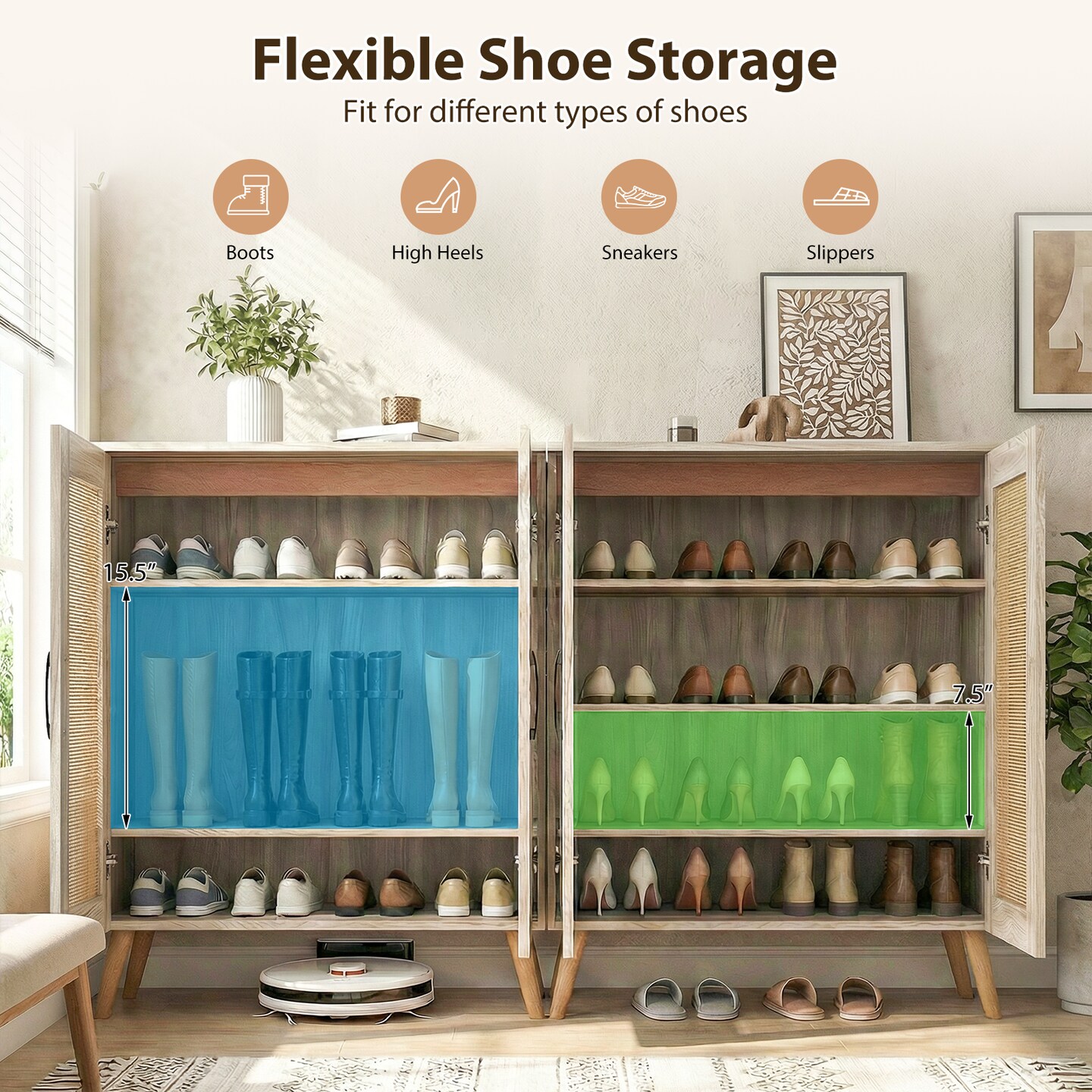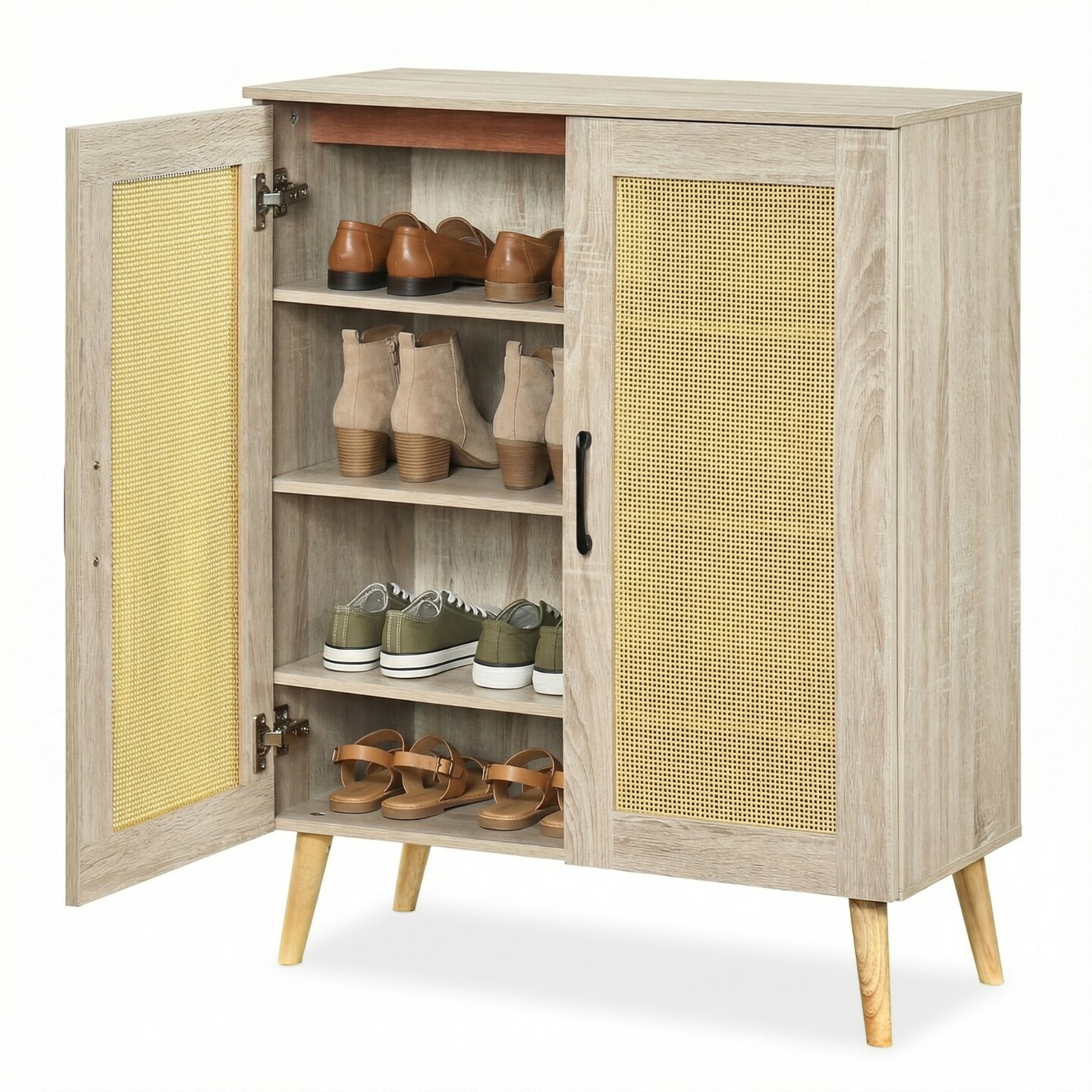 Shoe Storage Cabinet Rattan MDF Rubber Wood 3-Shelf Rack