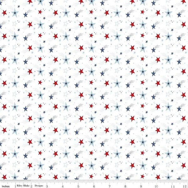 Shooting Stars in White (c15712-white) | Stars and Stripes Forever | Lori Whitlock | Riley Blake