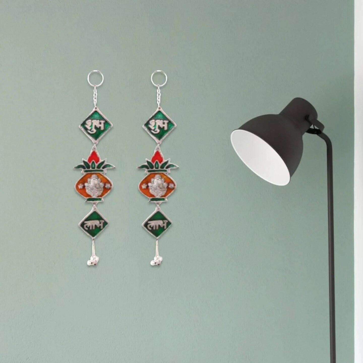 Shubh Labh Hanging Indian Wall Door Hangings Diwali Meenakari Rangoli Hanger Traditional Deepawali Temple Puja Decorations Home Entrance Decor Housewarming Wedding Return Gift (2 Pcs)