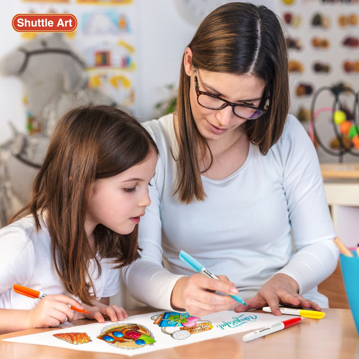Shuttle Art 60 Colors Permanent Markers, Fine Point, Assorted Colors, Works on Plastic,Wood,Stone,Metal and Glass for Doodling, Coloring, Marking