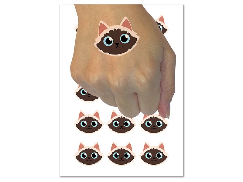 Siamese Himalayan Cat Head Temporary Tattoo Water Resistant Fake Body Art Set Collection (1 Sheet)
