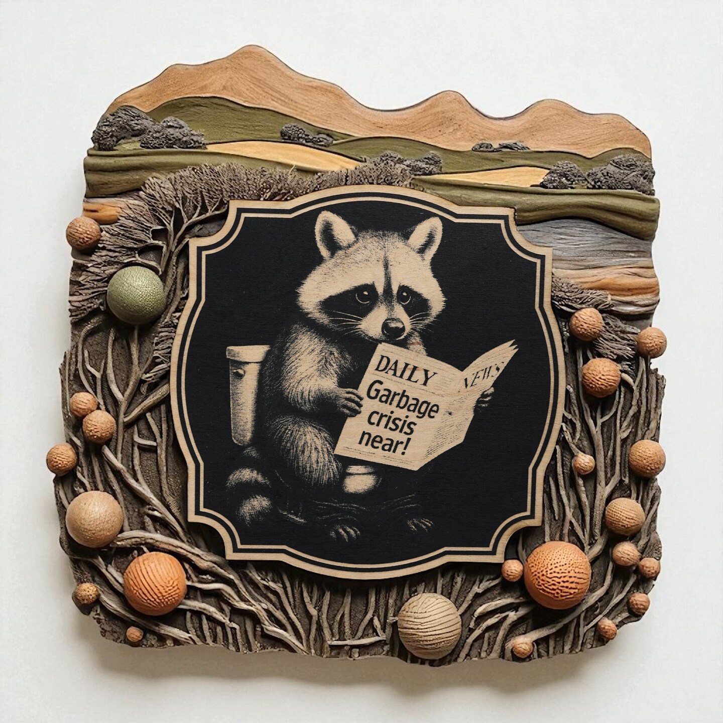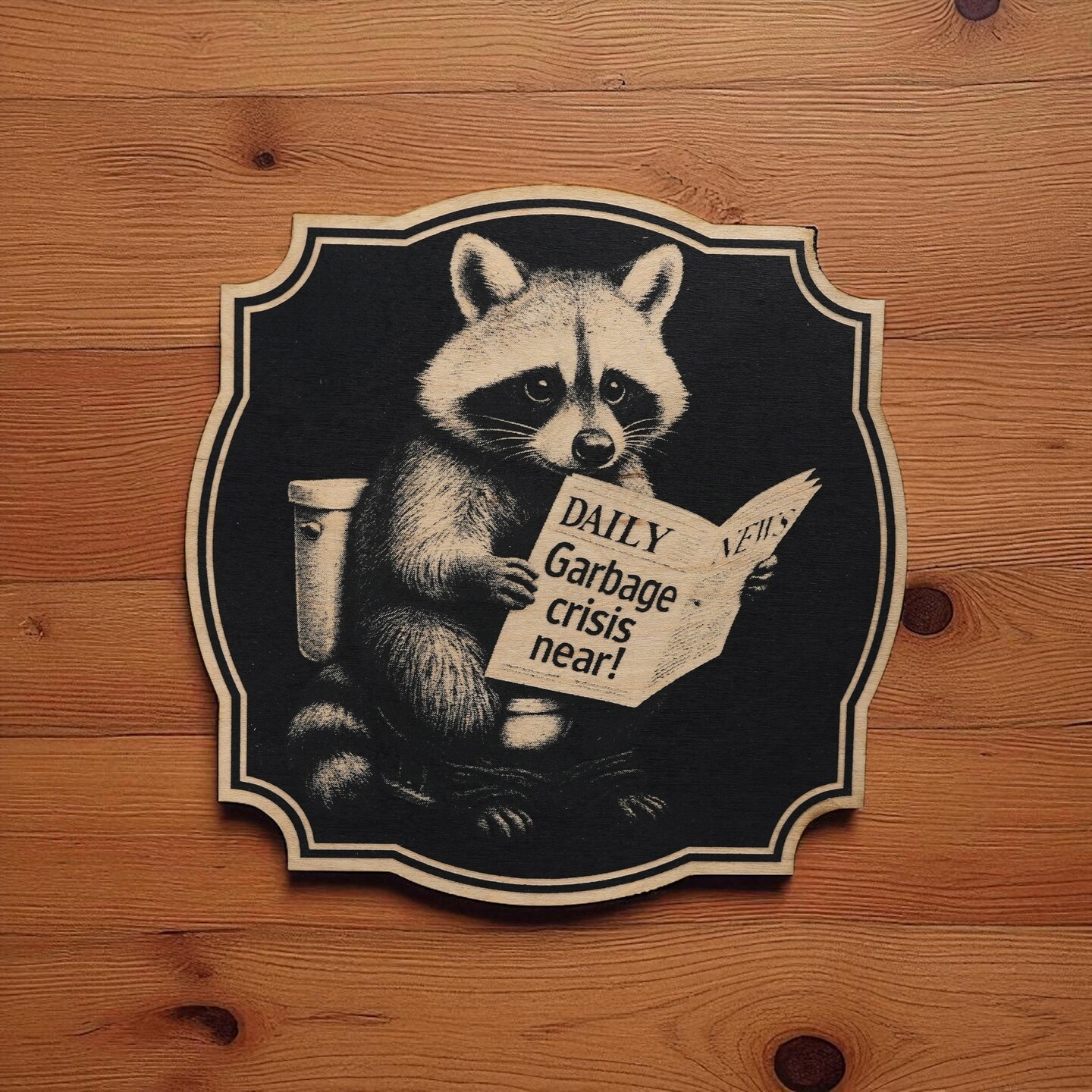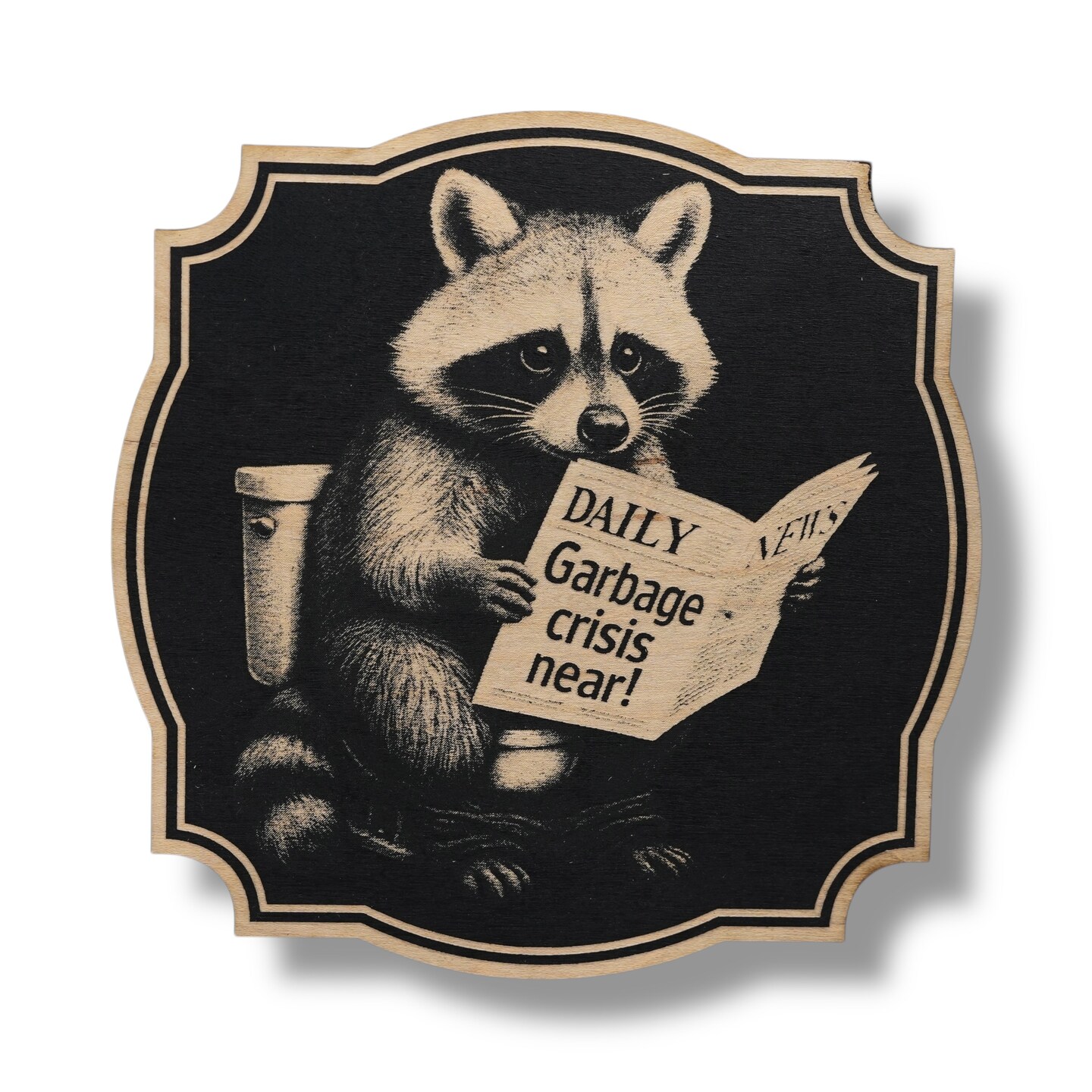 Sign - Black - Garbage Crisis Near with Raccoon