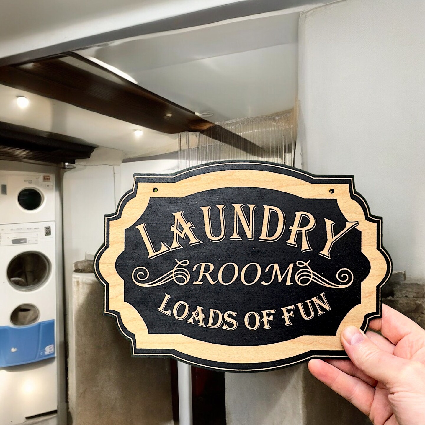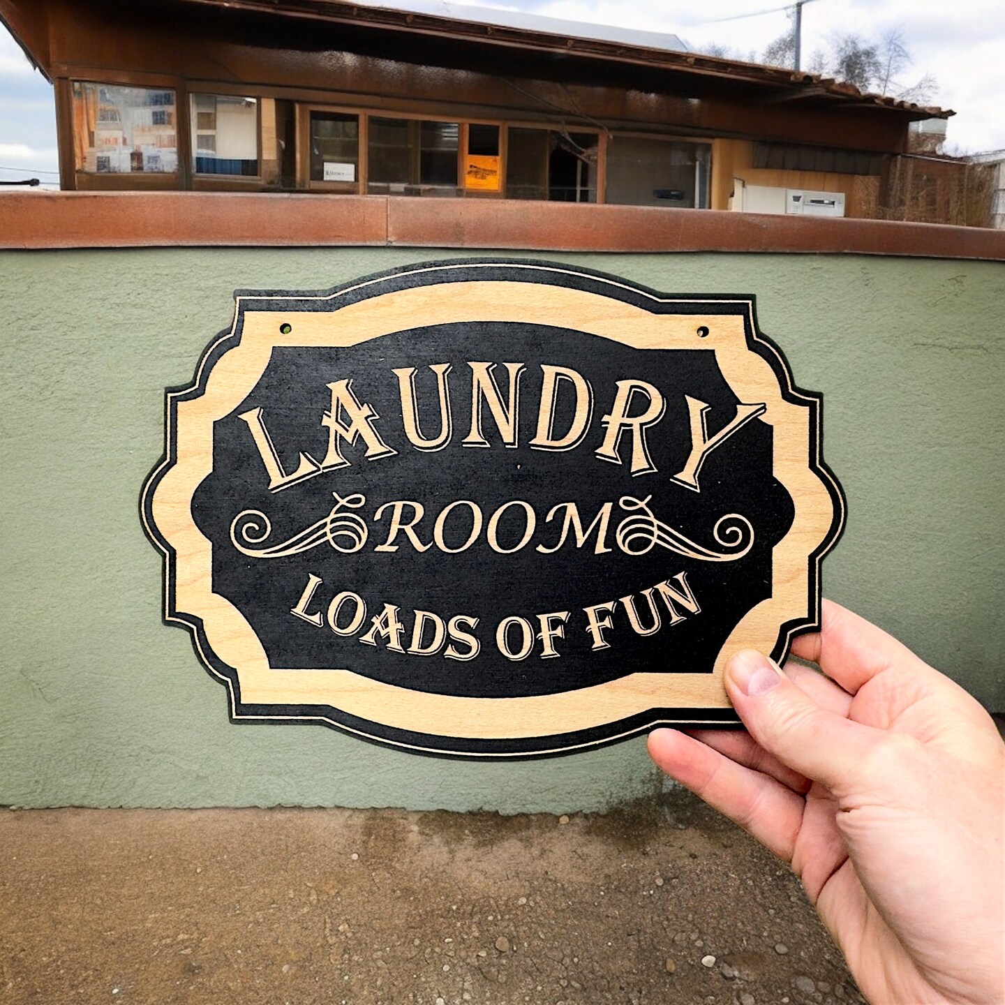 Sign - BLACK - Laundry Room Loads of Fun 10x7