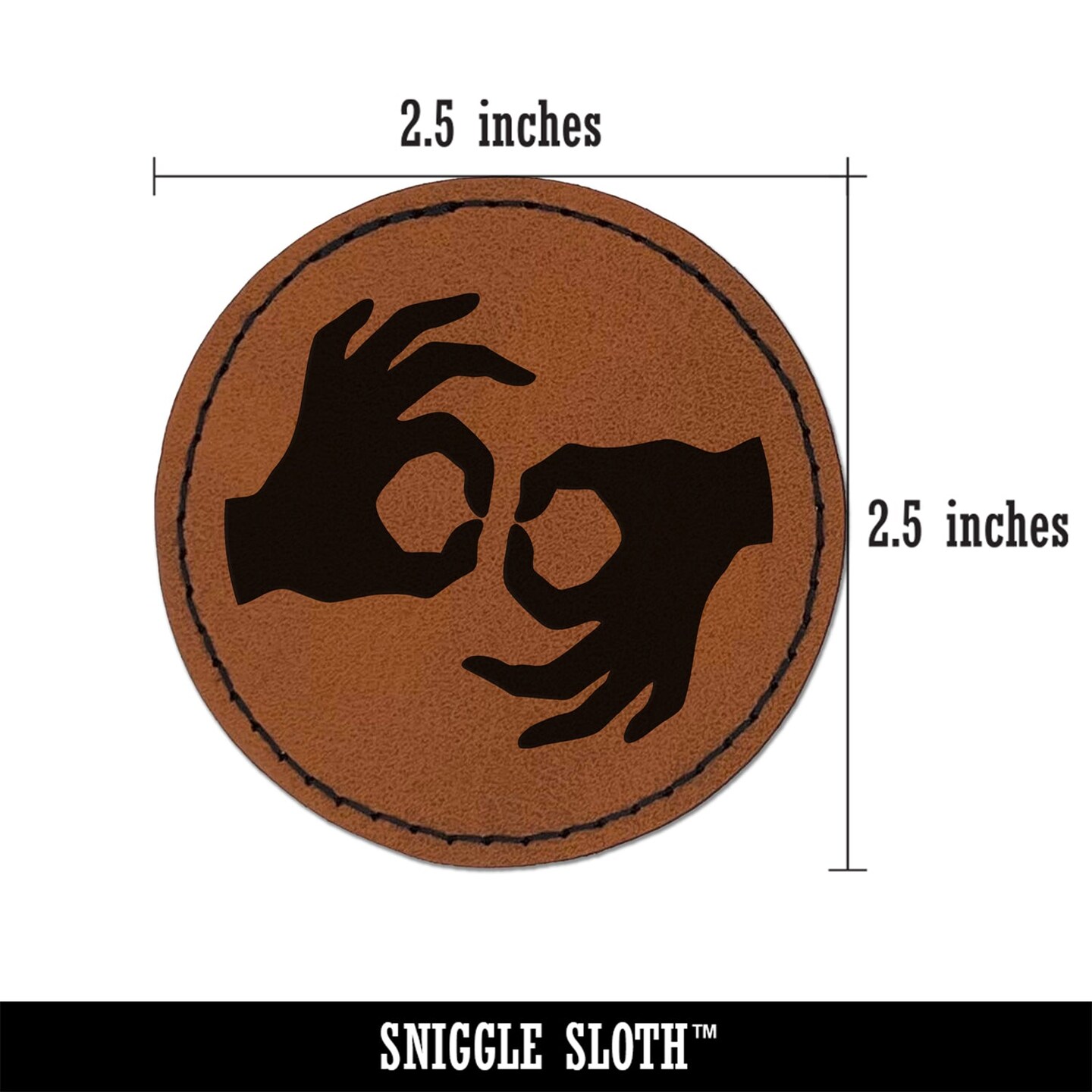 Sign Language Interpreters Symbol Deaf Hearing Impaired Round Iron-On Engraved Faux Leather Patch Applique - 2.5"