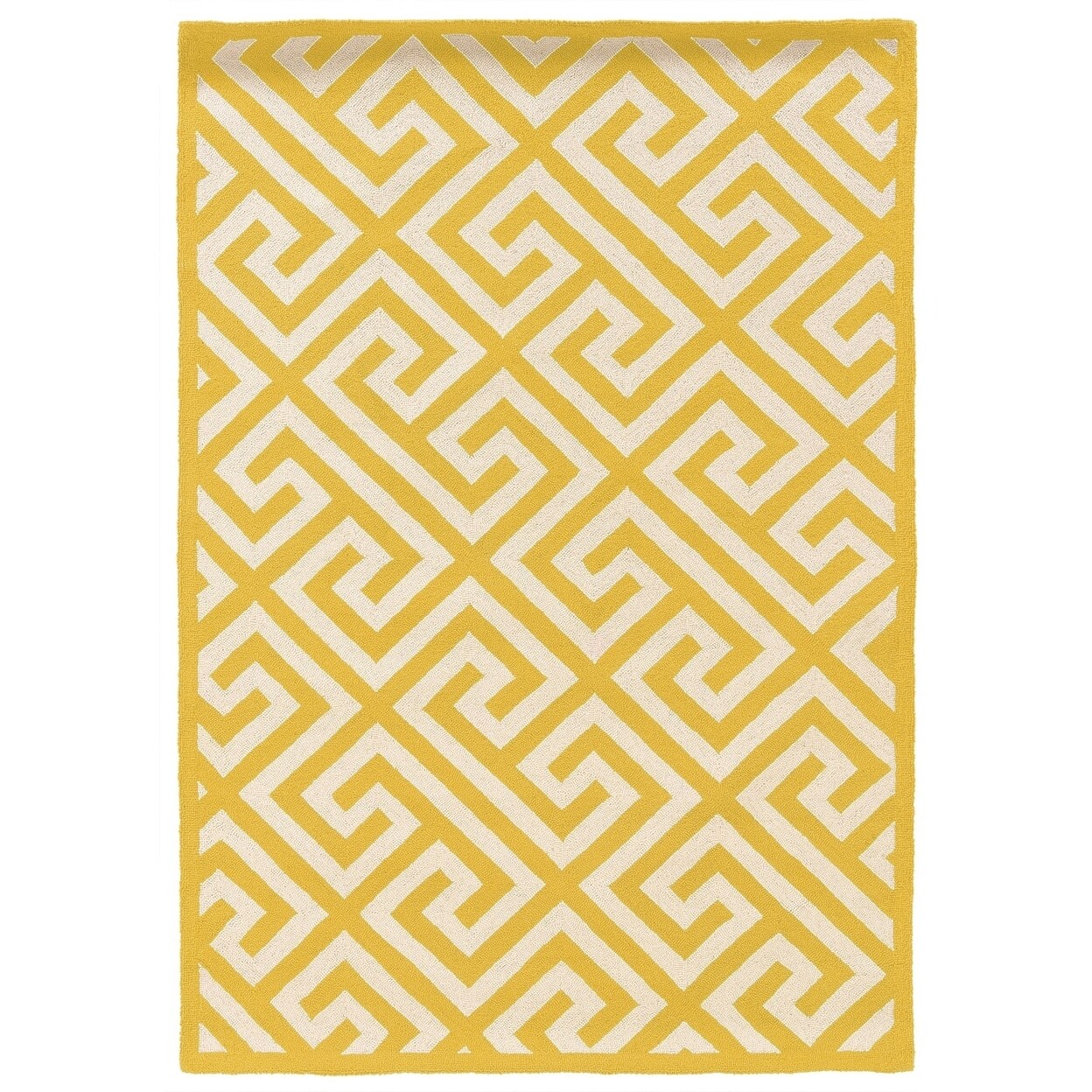 Silhouette Greek Key Rug Yellow 8X10 Hand Hooked Wool Modern Design 100%