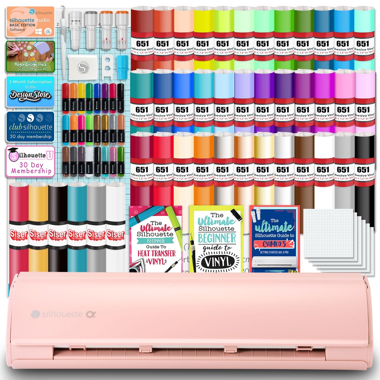 Silhouette Pink Cameo 5α Alpha w/ Advanced Blade Pack, 38 Oracal Sheets, HTV