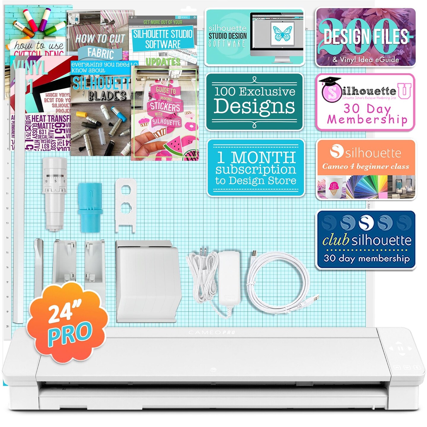 Silhouette White Cameo 4 PRO - 24" w/ Autoblade, Mat, Roll Feeder