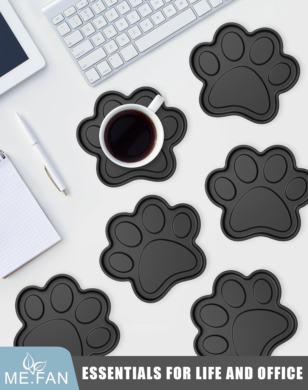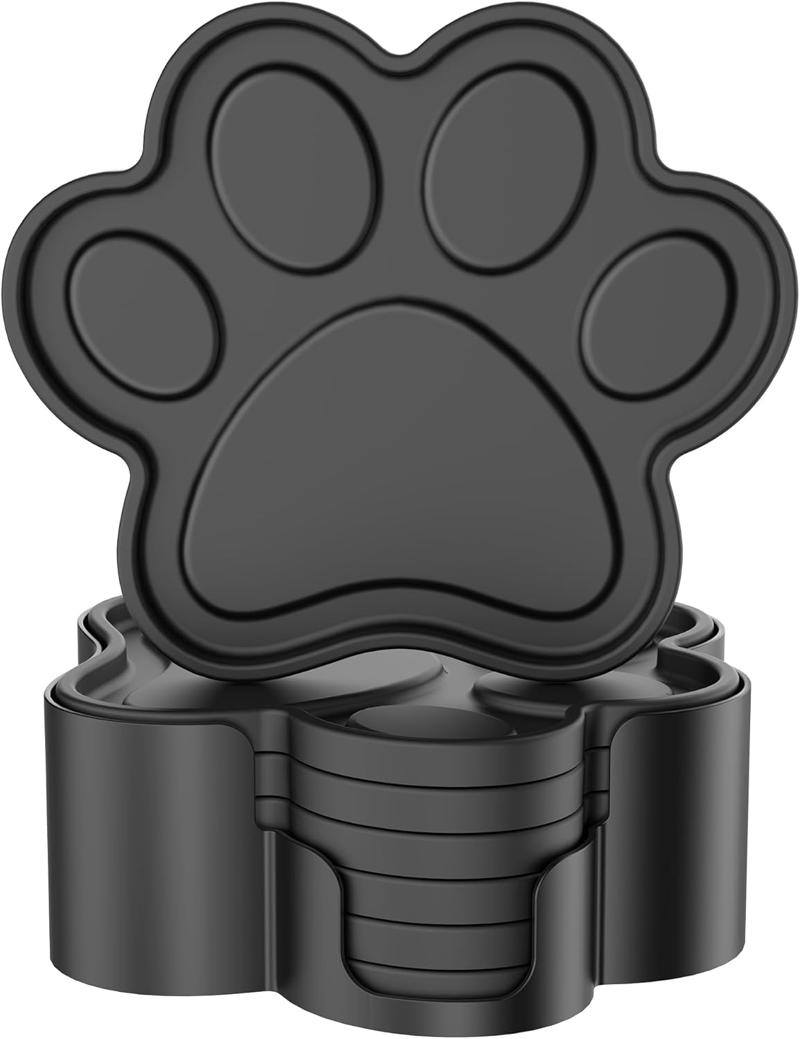 Silicone Coasters 6 Pack Paw Cup Mat with Holder