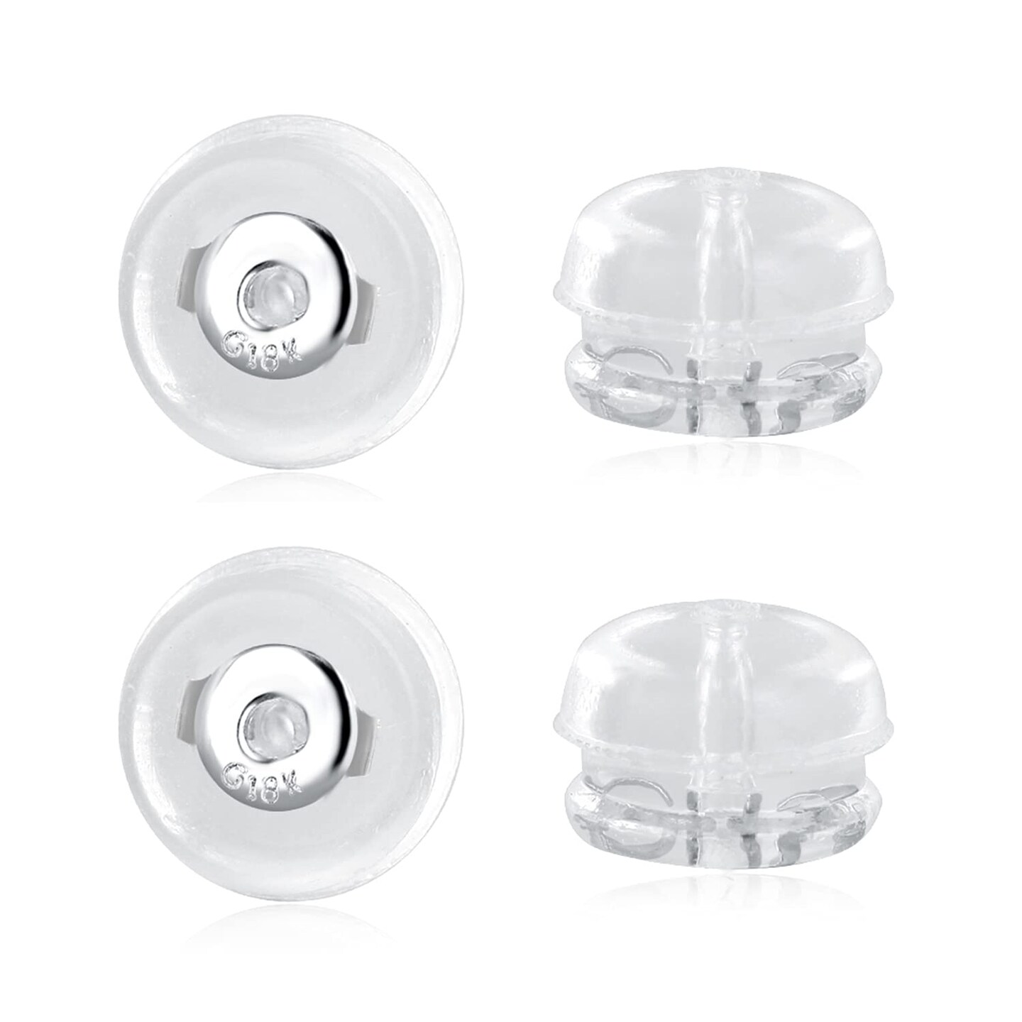 Silicone Earring Backs Replacement | Comfortable Rubber Earring Backings for Stud | Plastic Soft Flat Earing Backs Secure Hypoallergenic Safety Locking (2 Pair 14K White Gold)