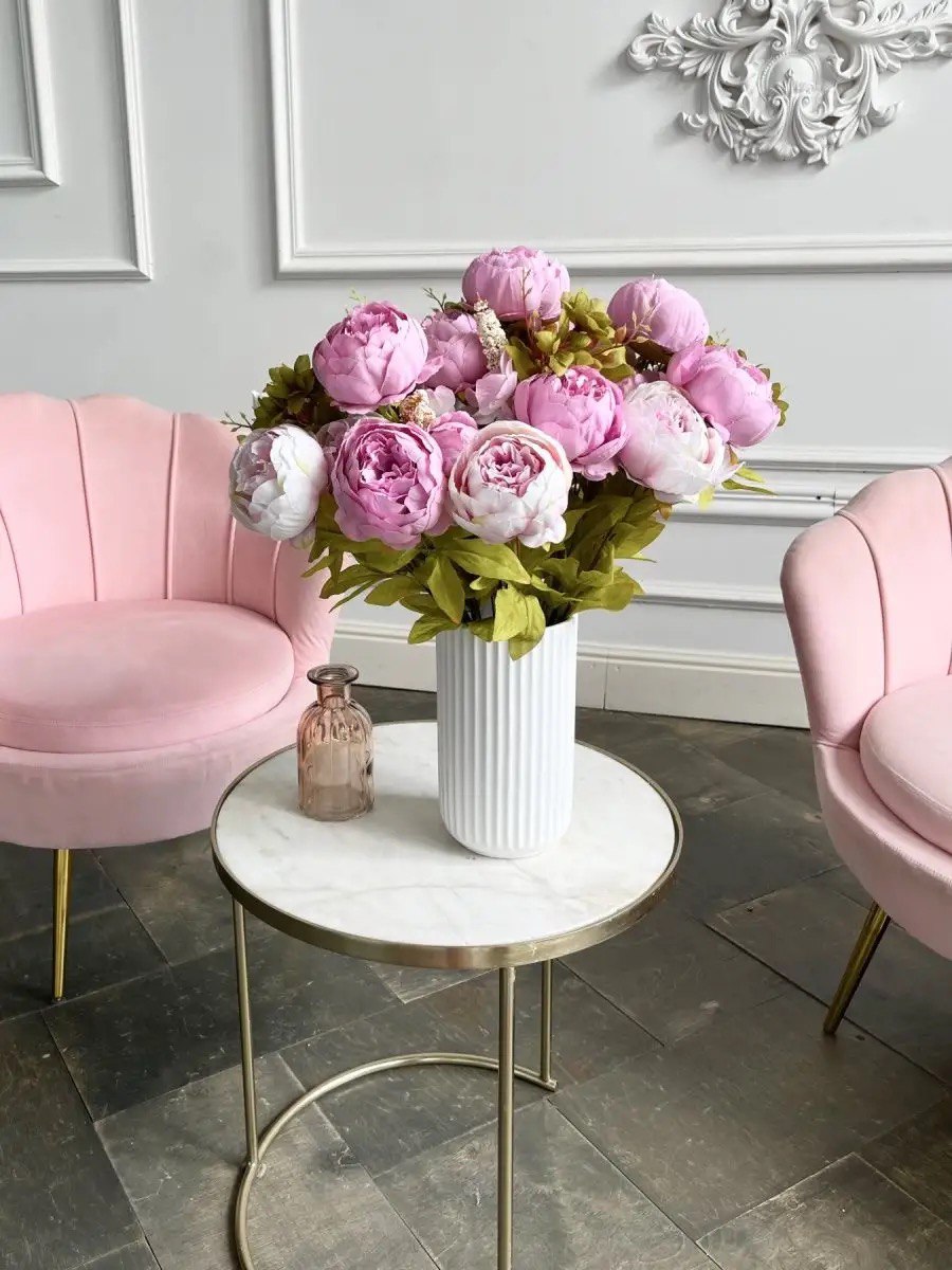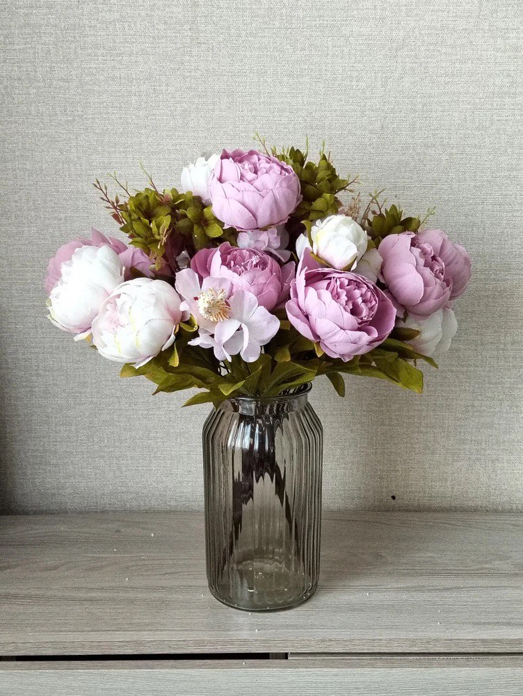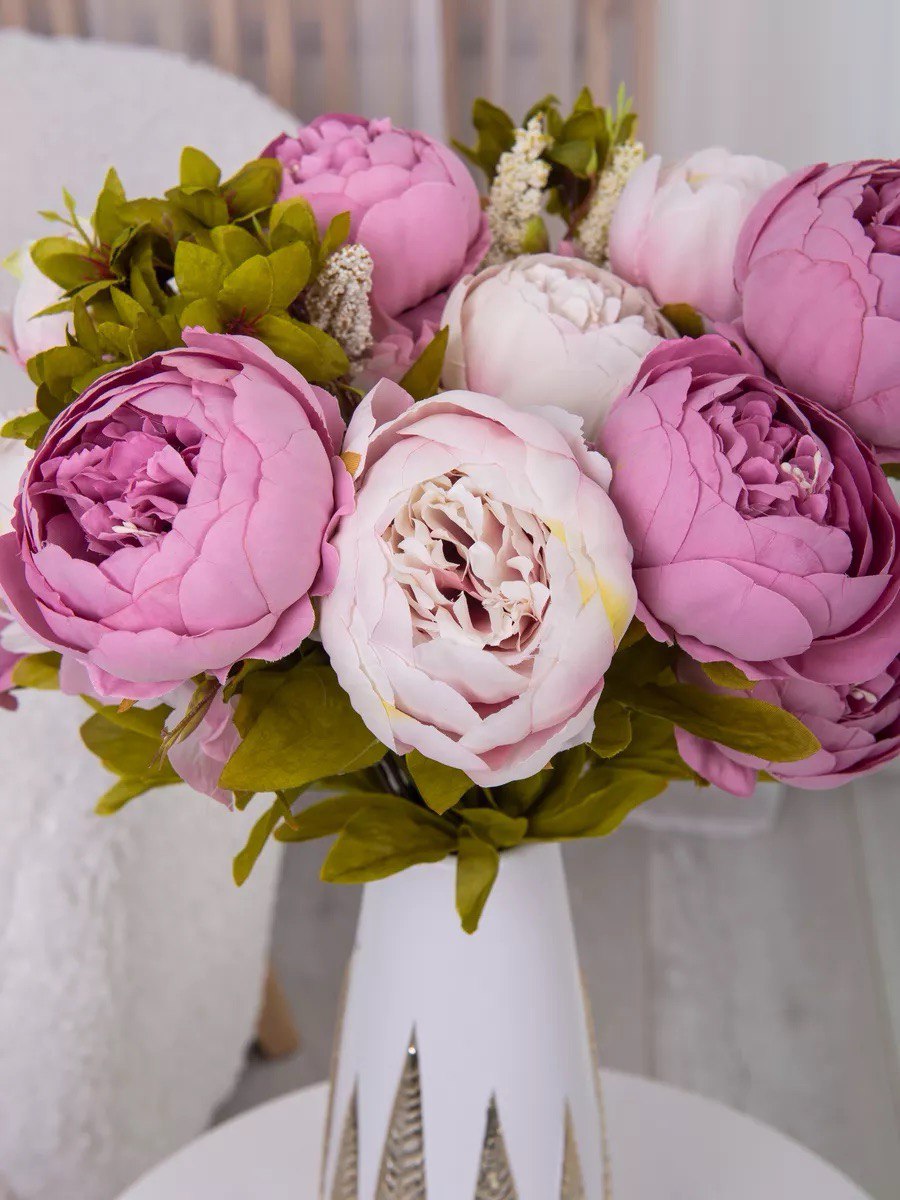Silk Peony Bouquet, Lavender– Vintage Artificial Peonies for Wedding, Home, and Office Decor, Light Purple