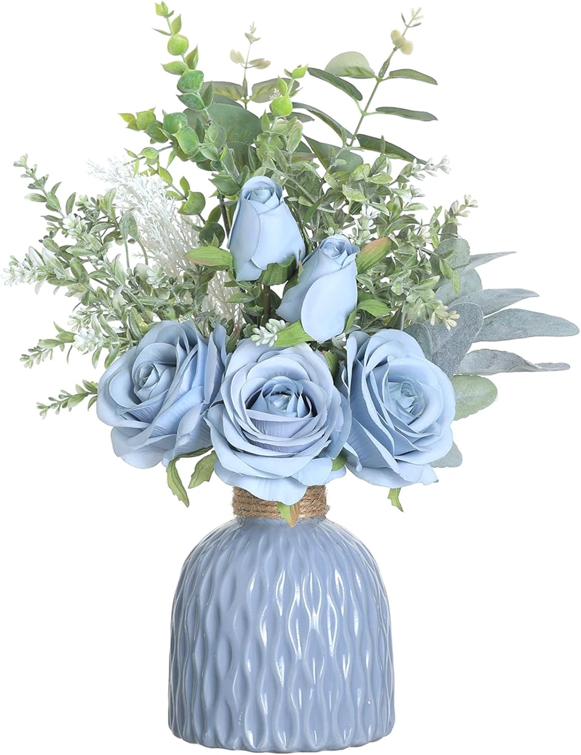 Silk Roses & Eucalyptus in Ceramic Vase Decor